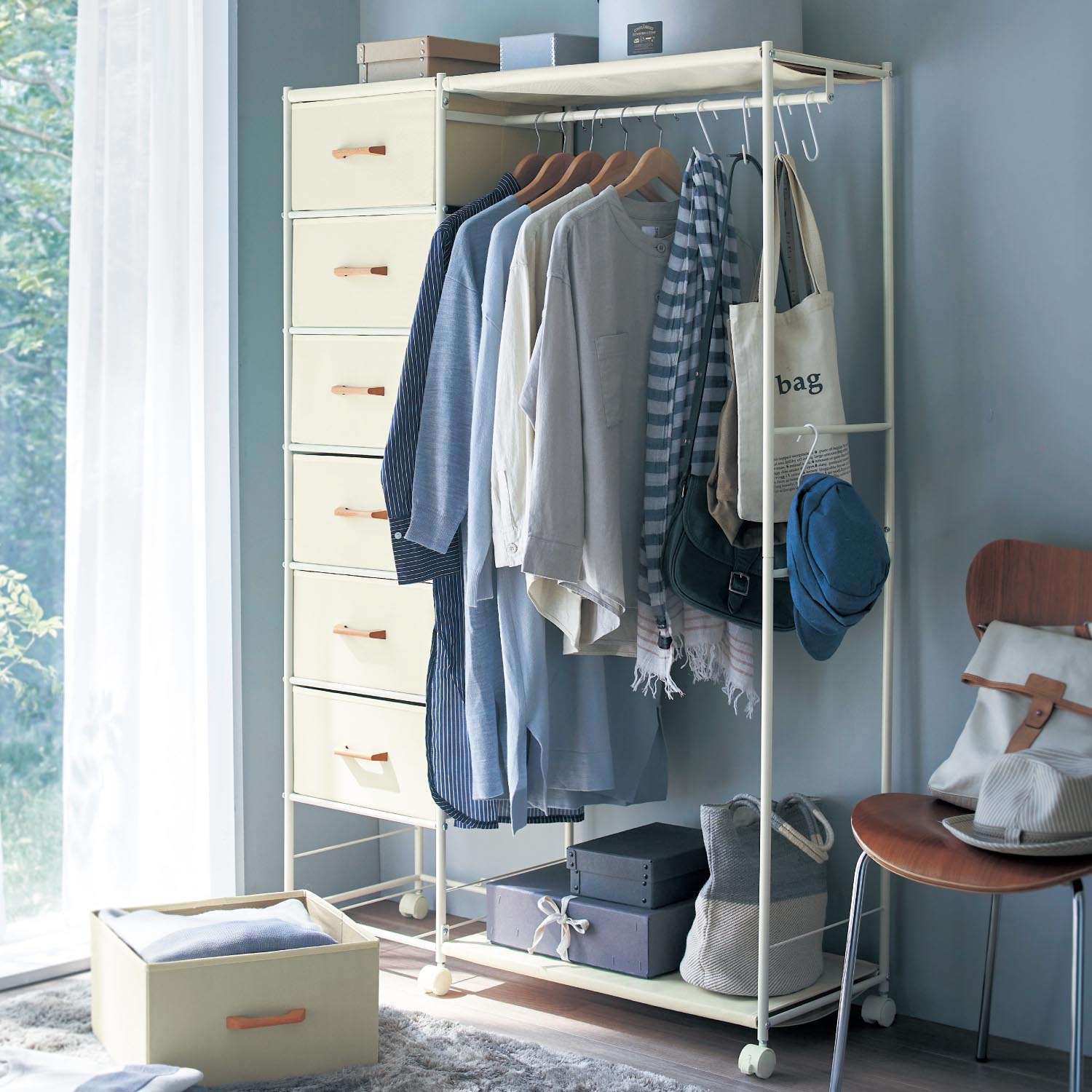 多段チェスト付きハンガーラック