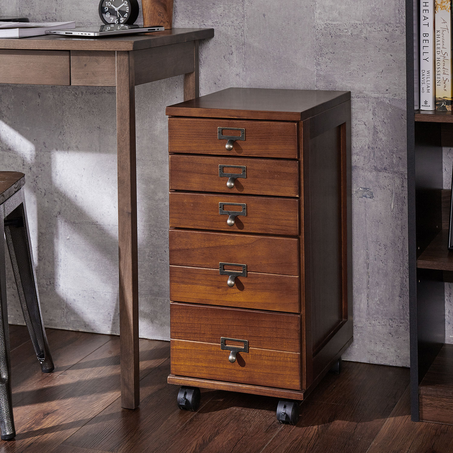 キャスター付きヴィンテージ調多段チェスト
