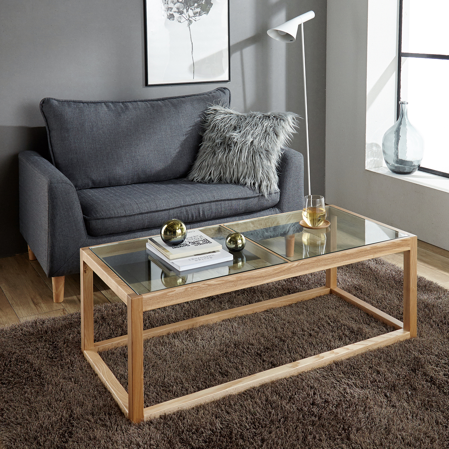 シンプルなデザインが映えるリビングテーブルアッシュ材とガラス天板の組み合わせで圧迫感を感じません合わせるソファを選ばず、高級感をプラスしてくれます。)