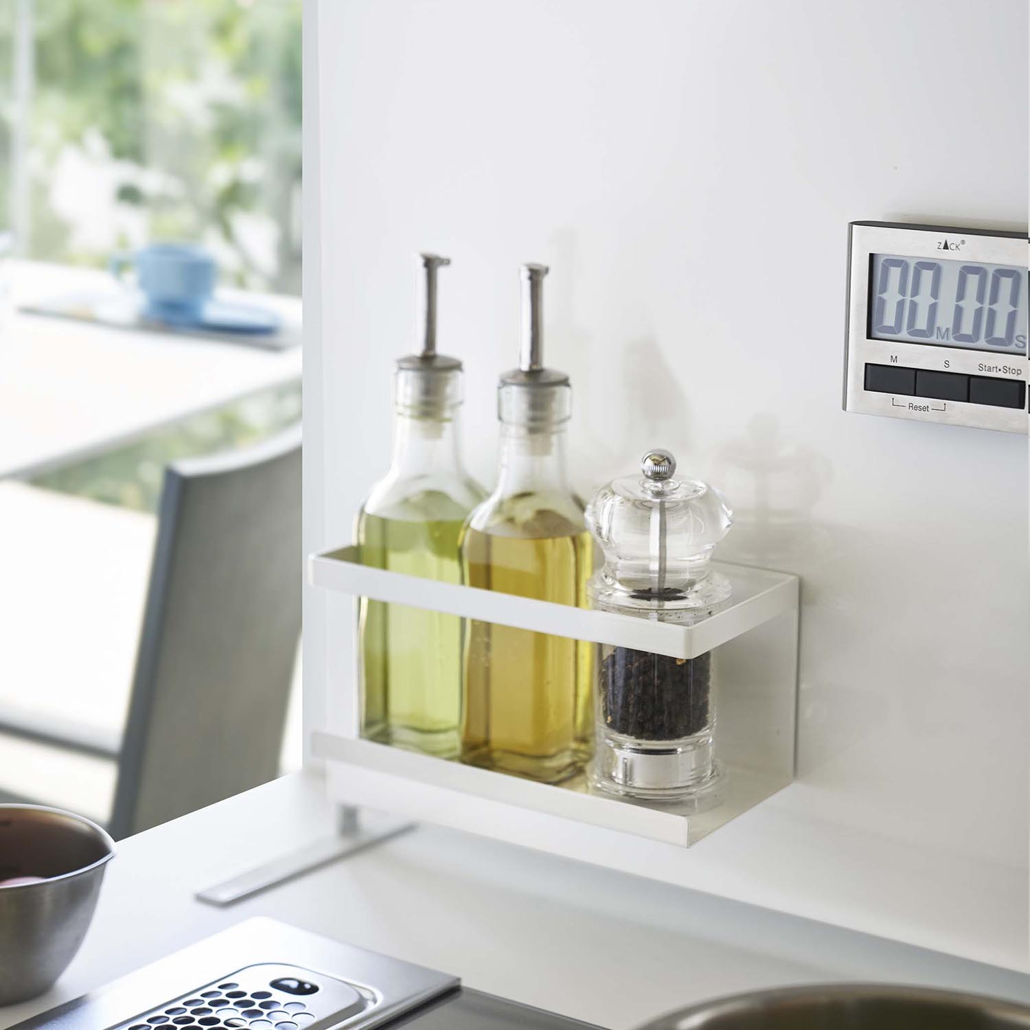 マグネットでピタッとくっつく、便利な調味料ラックです冷蔵庫横やキッチンパネルなど、スチールの壁面に簡単に取り付けOKスパイス類のほか、オイルやビネガーのボトル類もすっきり収納できます。同シリーズのマグネットタイプの収納アイテムと組み合わせて、キッチンをより使いやすく有効活用マグネットで取付けできます。#スパイスラック#調味料収納