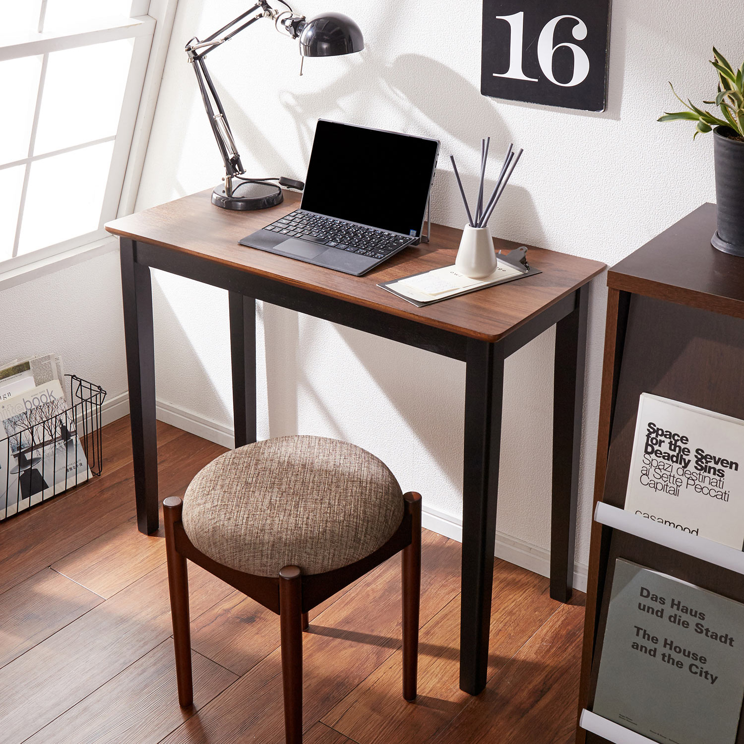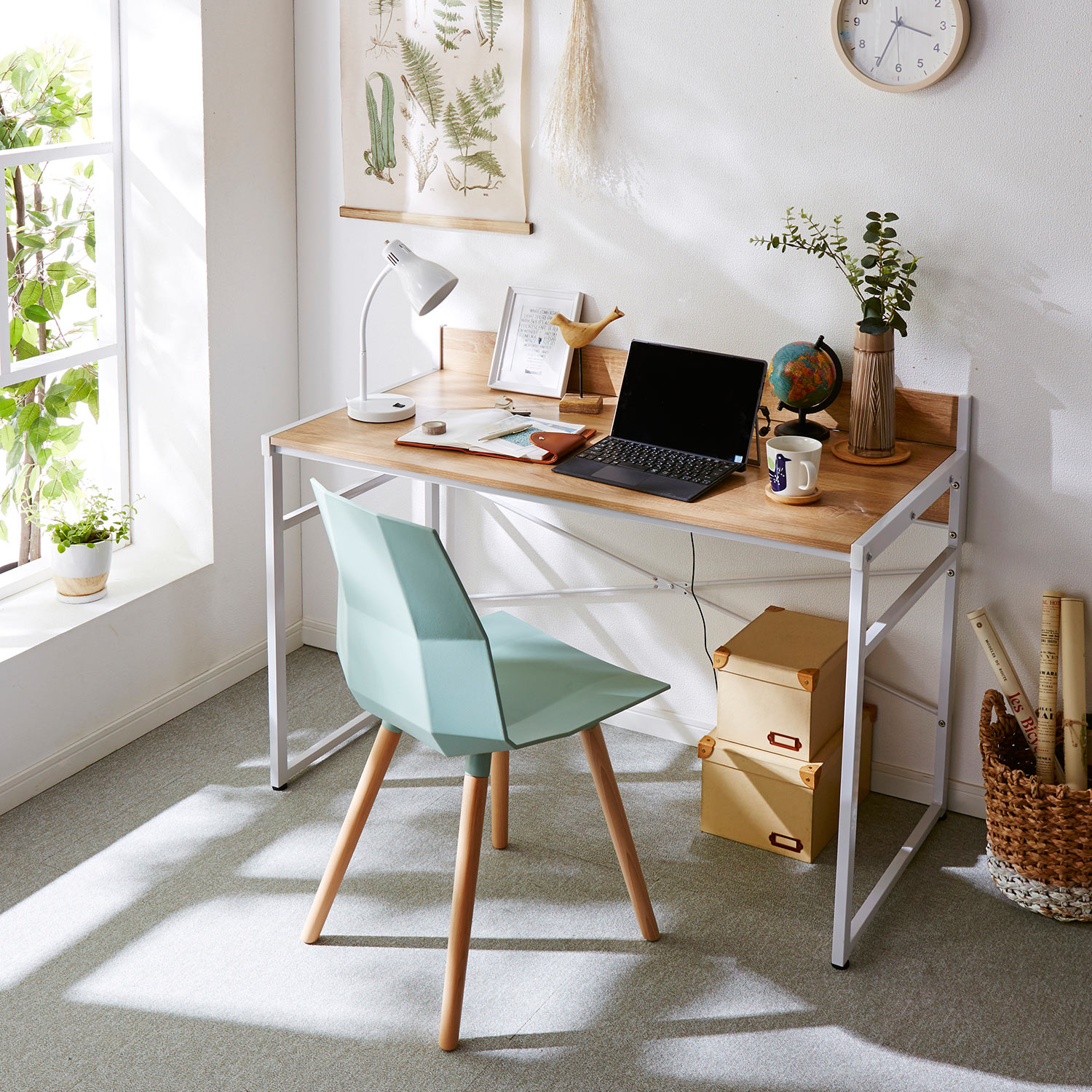 スチール×木目調でスタイリッシュにデザイン狭いスペースでも圧迫感なく置けるワークデスク