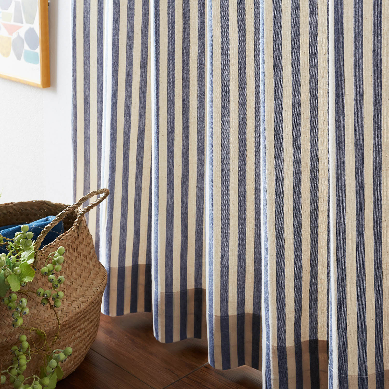 綿100%の素材感をたっぷり感じられる、ナチュラルなカーテンすっきりとした爽やかなストライプ柄は、インテリアを選ばず塩系や男前なお部屋にもしっくり馴染みます。清涼感のある「ブルー」と、トレンド感のある「グレー」の2色をラインナップ天然素材使用のおすすめカーテン