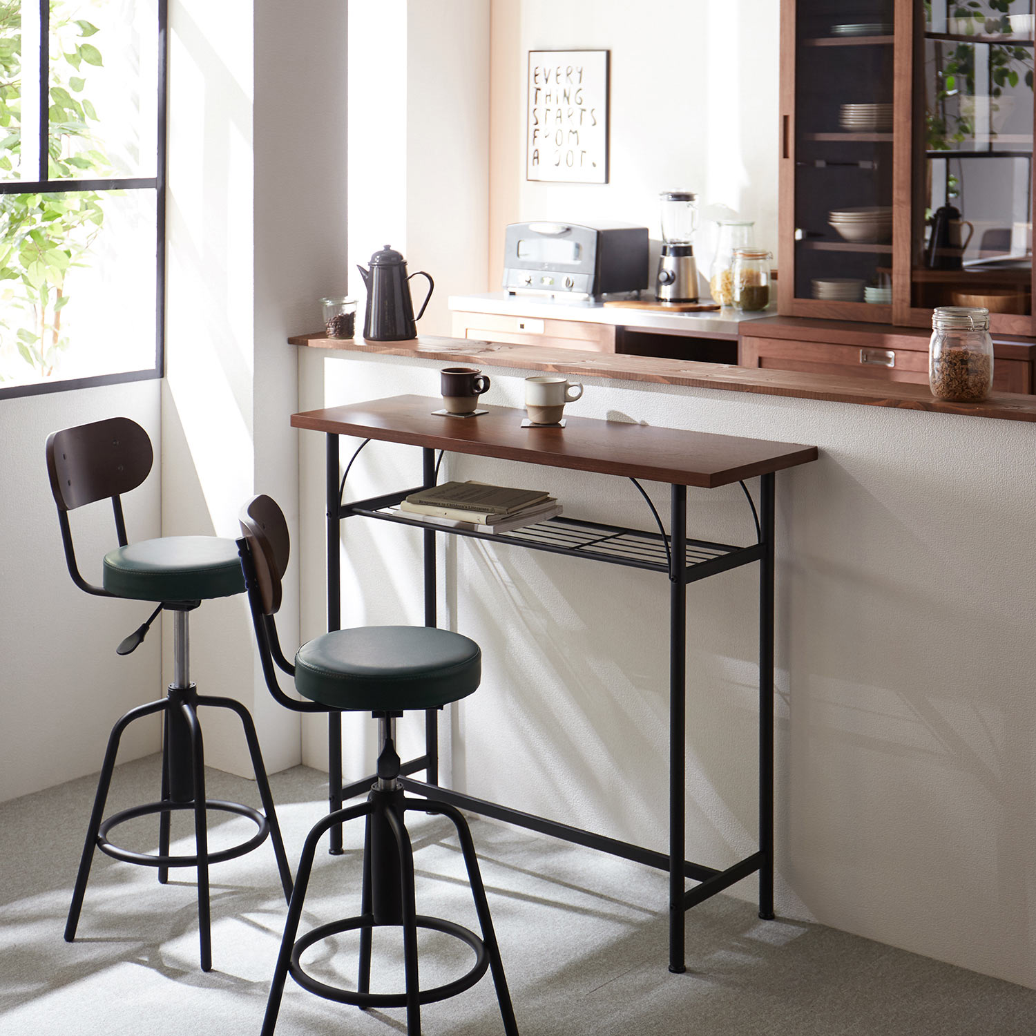 マットな質感のアイアン×木を組み合わせスタイリッシュなかっこよさを見せるカウンターテーブルです一人暮らしのお部屋にも置きやすいサイズ感ながら、天板下に棚を備え使い勝手は抜群お求めやすい価格なので、インテリアを一新したい方やこれから新生活を始める方にもおすすめです)