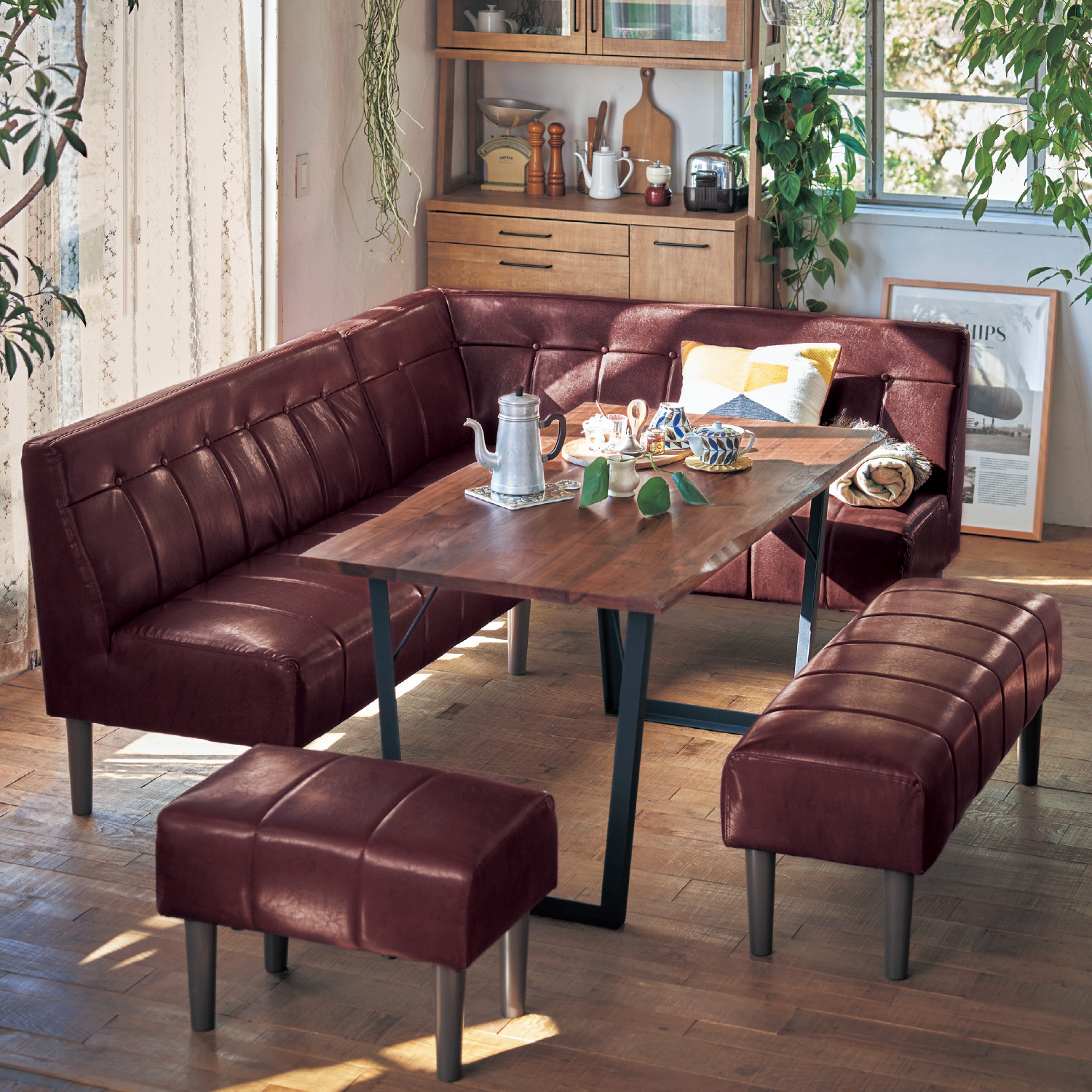 ほどよい硬さのクッションと高めの背もたれ食事がしやすく食後もゆったり寛げます汚れてもサッと拭き取れてお手入れが簡単レトロなくるみボタンがアクセントですスペースや人数に合わせて選べる様々なタイプ1人掛けソファーとスツールは使いやすいのが魅力肘付きタイプ、肘なしタイプをつなげてL字に使える対面式にも単体でソファーとしても使えるアイテム【座り心地】背もたれ・座面ともにしっかりしたクッション性長時間座っても疲れにくい座り心地です)