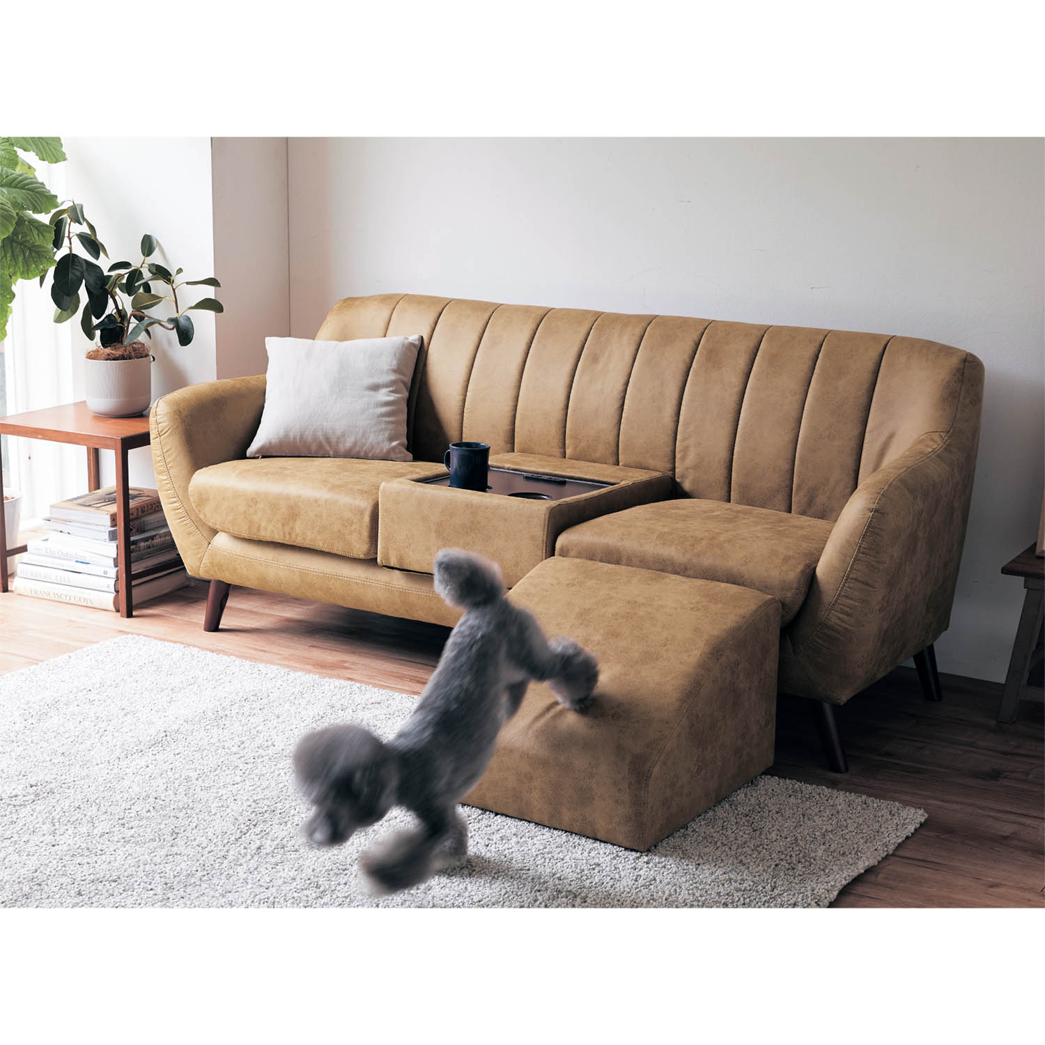 質感がリアルなレザー調ソファーコーティングを施した生地を使用しているので、ペットが爪で引っ掻いてもキズつきにくく、目立ちにくい仕様オットマンはスロープ付だからソファーへの上り下りが苦手なペットも安心です)