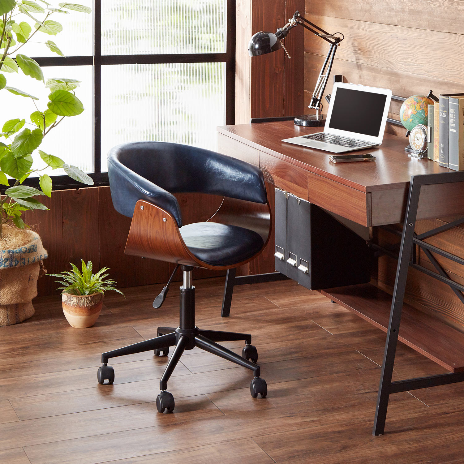 ブルックリンスタイルや男前テイストのインテリアにぴったりのワークチェア座面はウォルナット調のシートを使用した曲げ木のフレームに、微妙な色ムラも再現した合皮素材を使用し、ビンテージ調の佇まいに仕上げています。座面や背もたれ、ひじ掛けにもソフトなクッションを入れているので、座り心地も快適また座面の高さはレバーで44cm~54cmまで調節可能キャスター付きのマットブラックで仕上げた脚部が、全体を程よく引き締めるアクセントになっています。カラーは、レッド、ネイビーベージュの3色