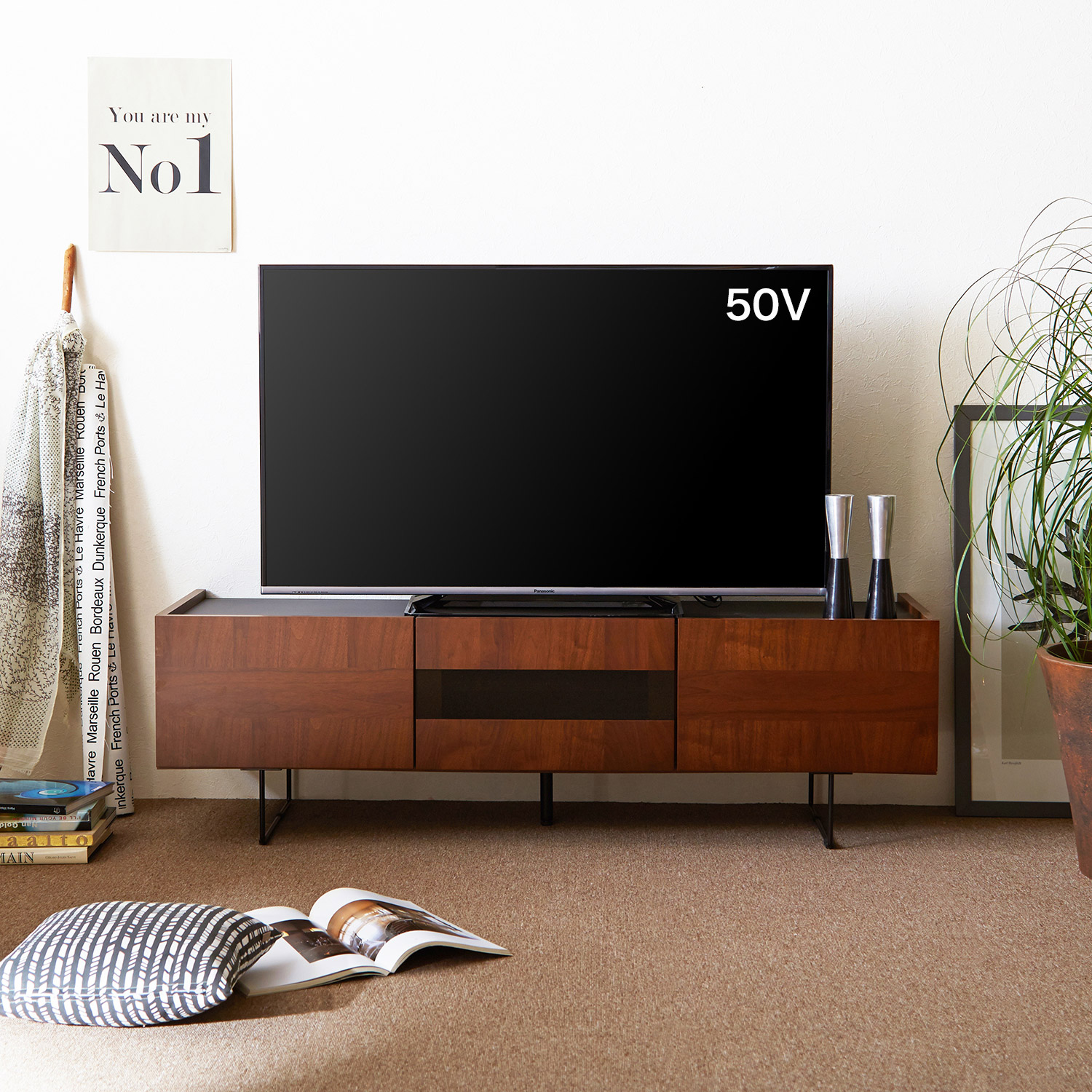 天板と引出しの前板に、表情豊かな天然木のウォルナット材を使用先細りの丸脚とアイアン素材のハンドルがシックでモダンな印象。上部のオープン棚は背板がないので、DVDデッキや新聞、雑誌などを収納しても内側は清潔感あふれるホワイトに仕上げた深めの引出しは奥までスーッと引き出せるフルスライドレール式引出しが2つの「幅約120cm」と引出しが3つの「幅約150cm」、お部屋のスペースに合わせて2サイズから選べます。