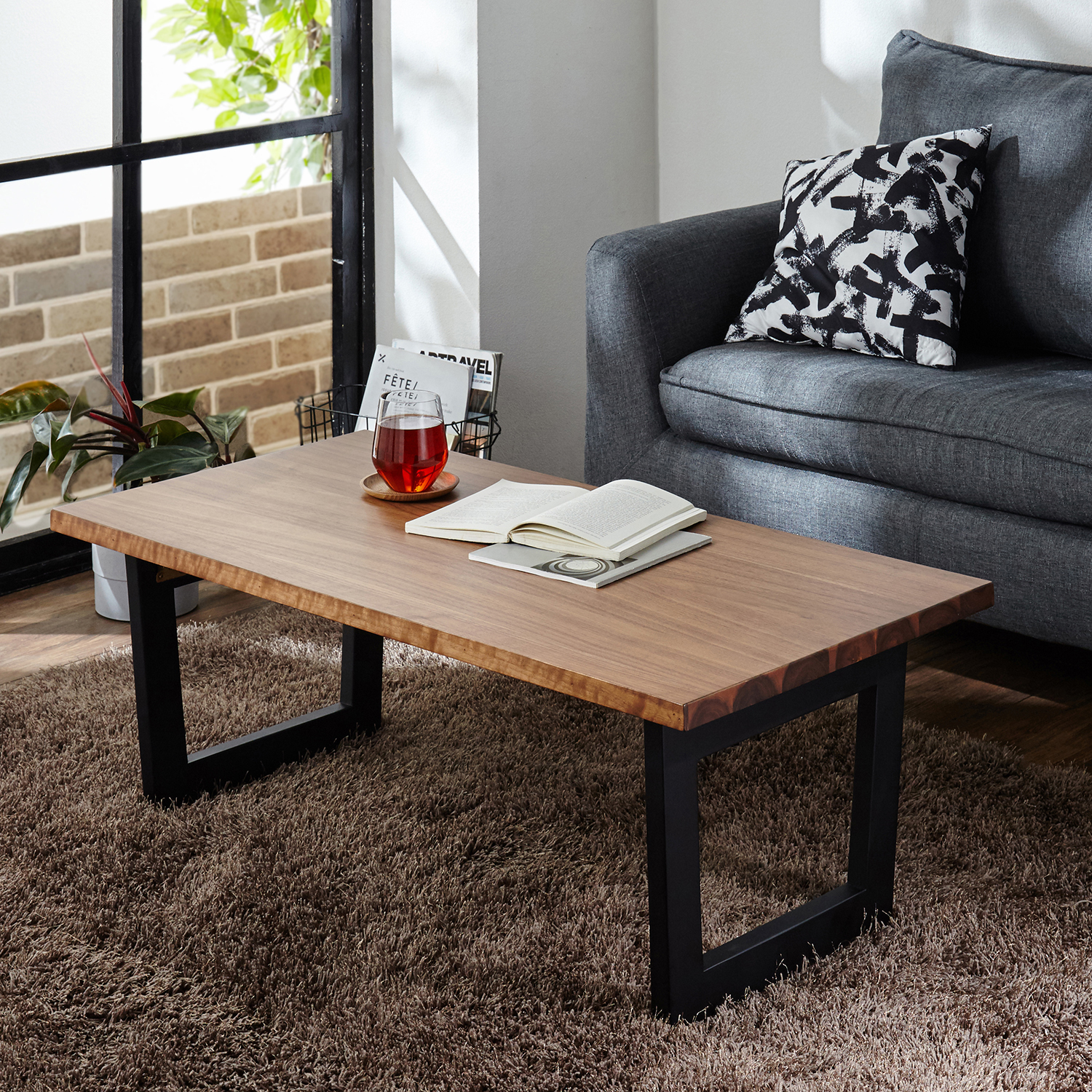 ウォルナット材の様々な表情を楽しめる厚みもあり木質感漂うリビングテーブル脚部はロの字脚を採用し重厚感もアップ脚部は折りたたみできて、使わないときに空きスペースに収納可能和室にも合わせやすく、塩系や男前インテリアなどにもピッタリ