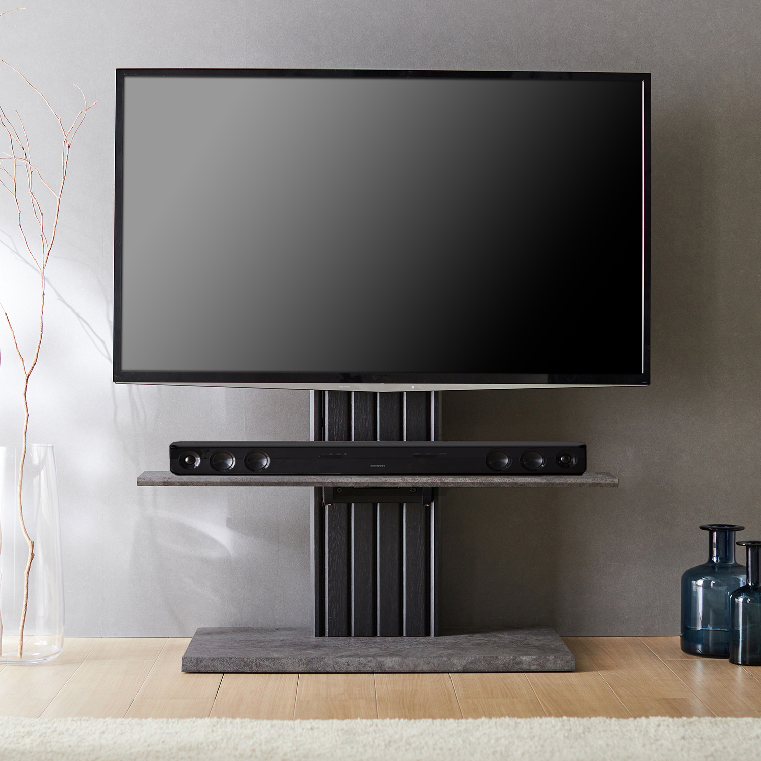 ディスプレイするようにテレビを設置取り外し可能なサウンドバー用の棚板付き棚板を外してすっきり見せることもできます。背面にはHDDやタップなどをちょこっと収納できるスペースがあり便利テレビの角度を前傾15°~後傾5°まで調整できるので、見えやすい角度に調整が可能対応テレビサイズは40~65V型グレーはモルタル調の天板とブラックの本体の組み合わせがモダンな雰囲気)