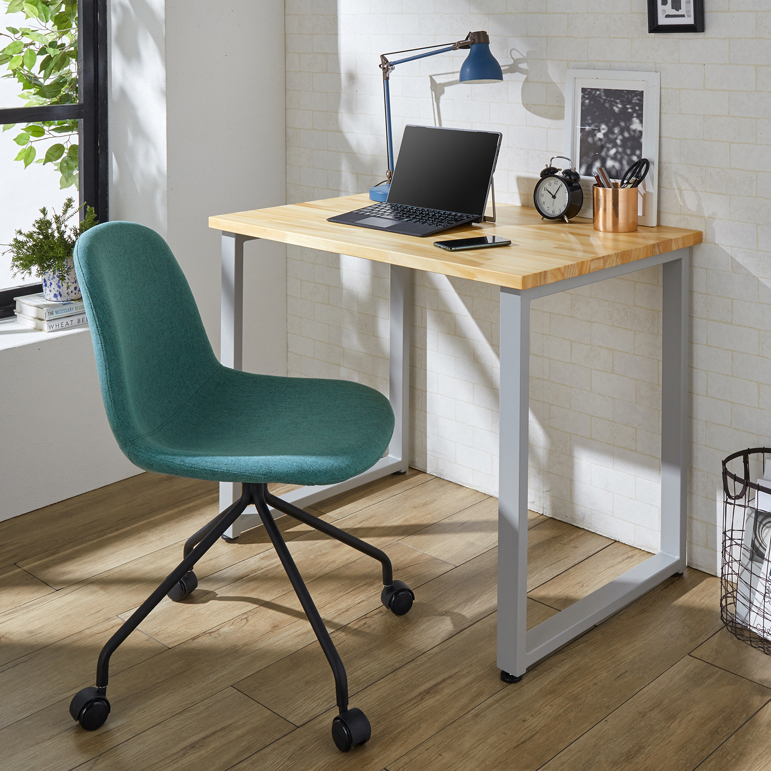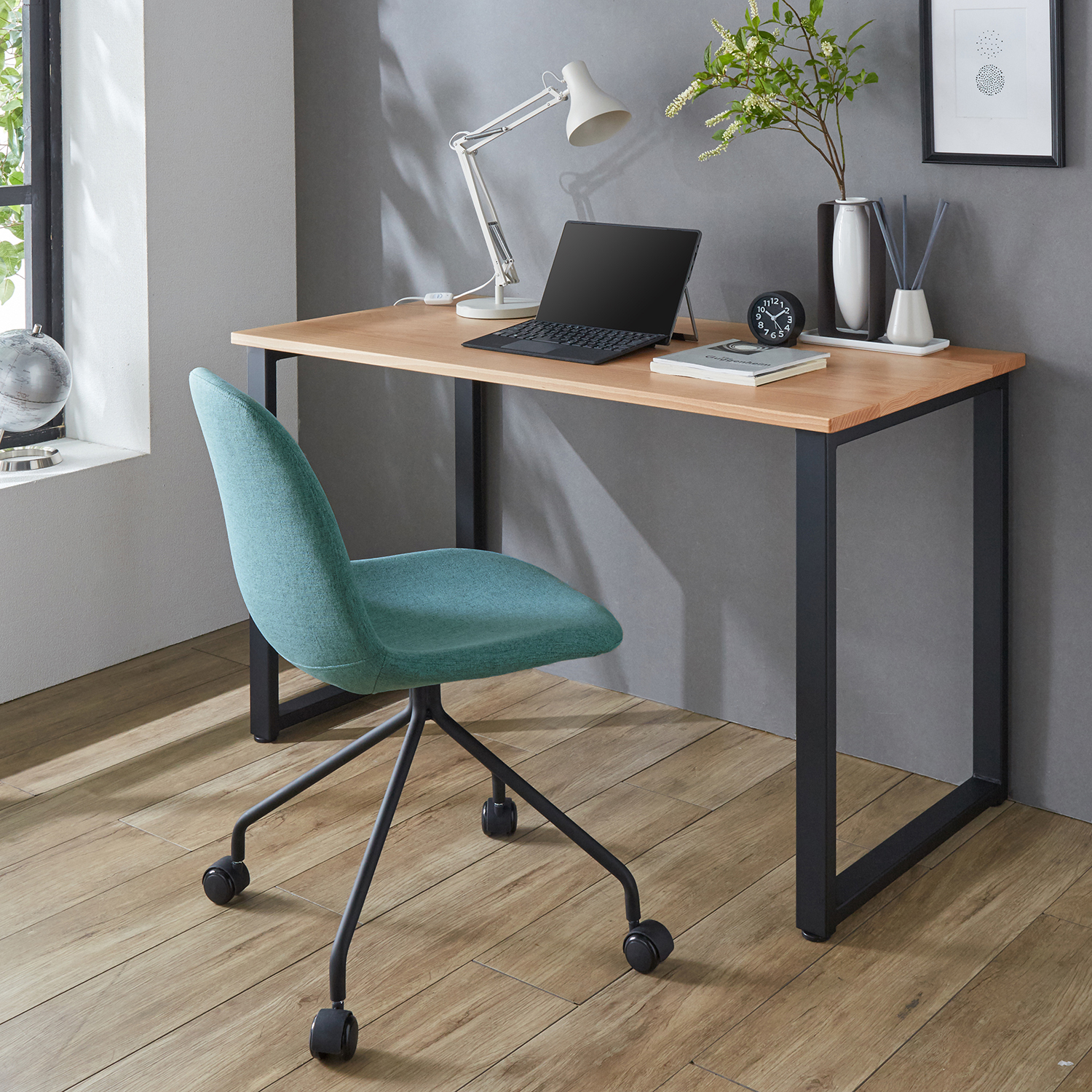 天然木突板の天板とスチールの脚を組み合わせたモダンなデスク