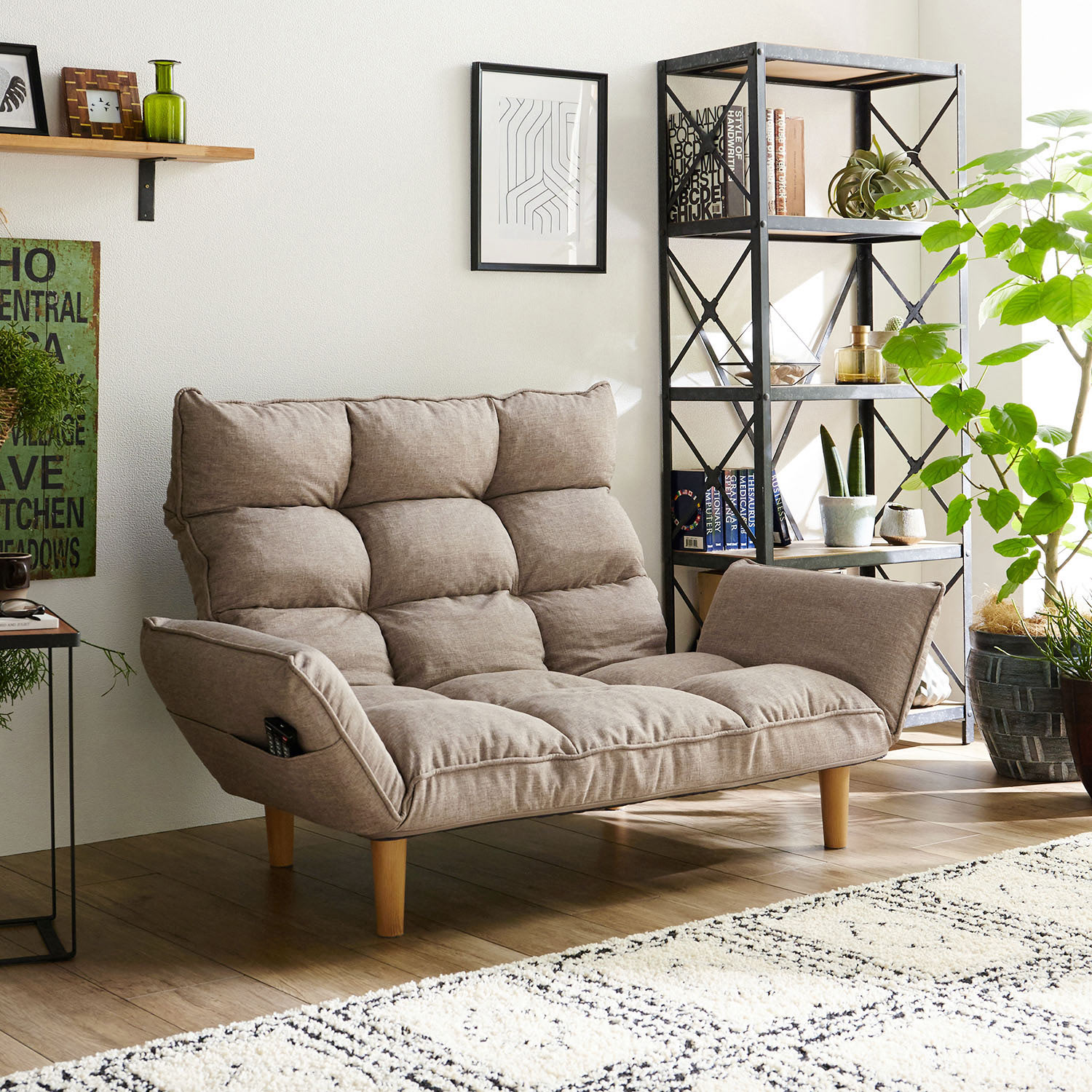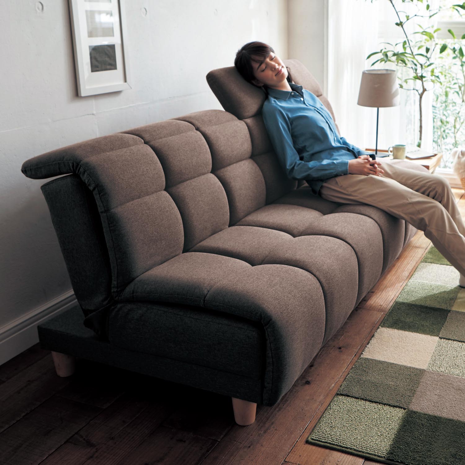 座椅子のような気軽さで、お部屋になじむローソファー背中をゆったりあずけられるハイバックタイプ背もたれは7段階にリクライニングできます)