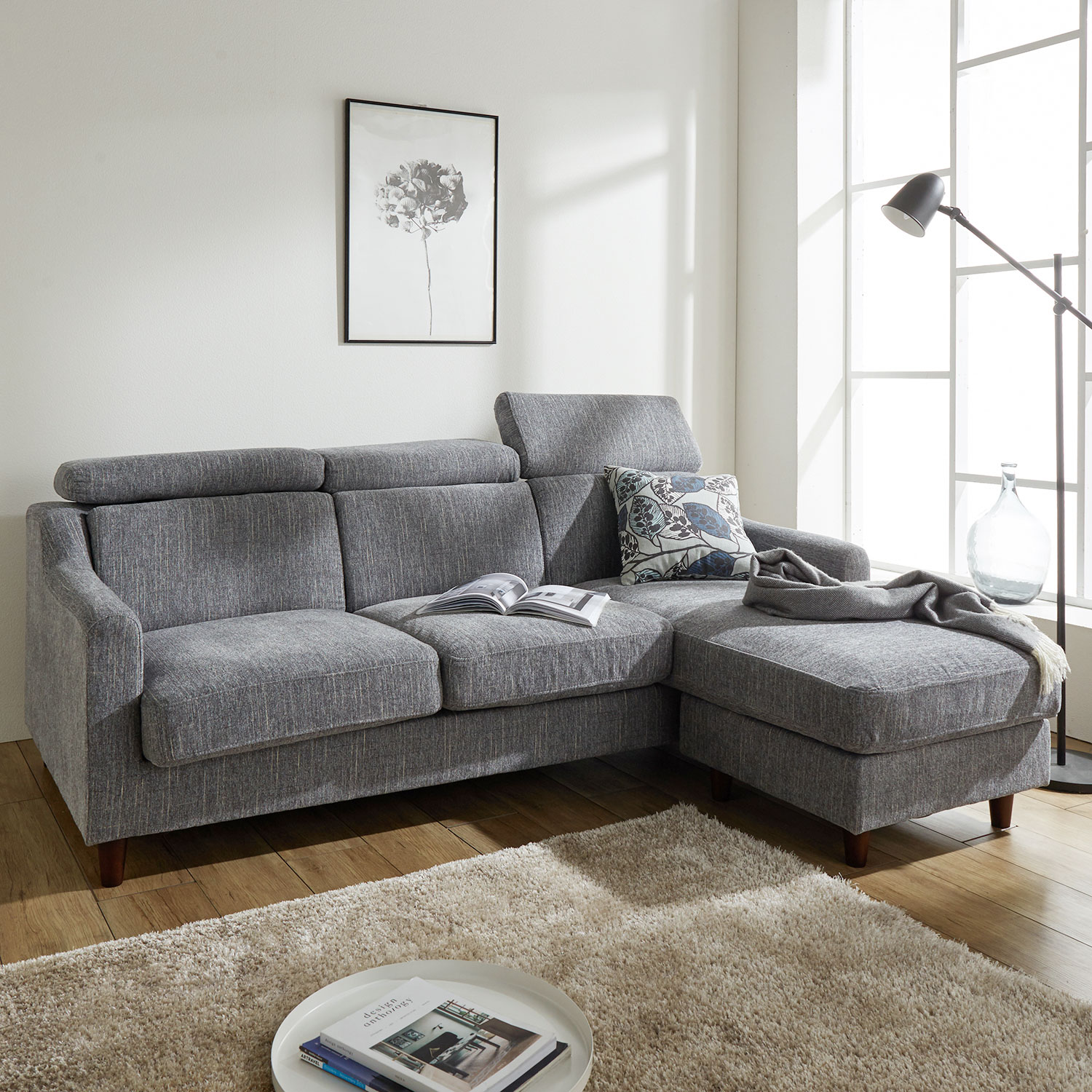 脚部はネジ不要の簡単取り付けタイプリビングスペースを極上のくつろぎの空間に