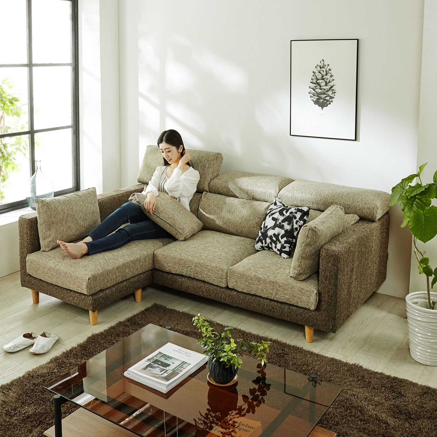 北欧インテリア ハイバックソファでくつろぐ