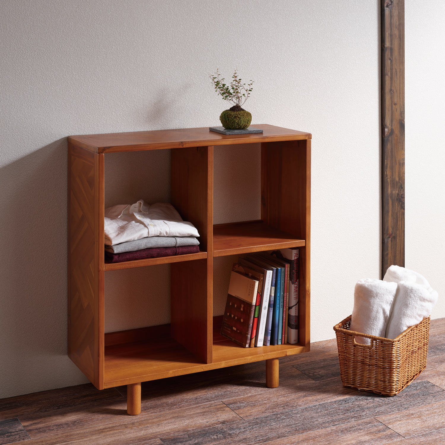 アジアンな雰囲気を魅せるアカシア材の突板を使用木の継ぎ合わせでモザイク柄を表現したオープンラック。4マスに区切られたスペースには、雑貨やグリーンをおしゃれにディスプレイ収納OK背面が抜けているので、お部屋を間仕切るアイテムとしても大活躍します。脚を付けたスタイリッシュな佇まいは空間を狭く見せません)
