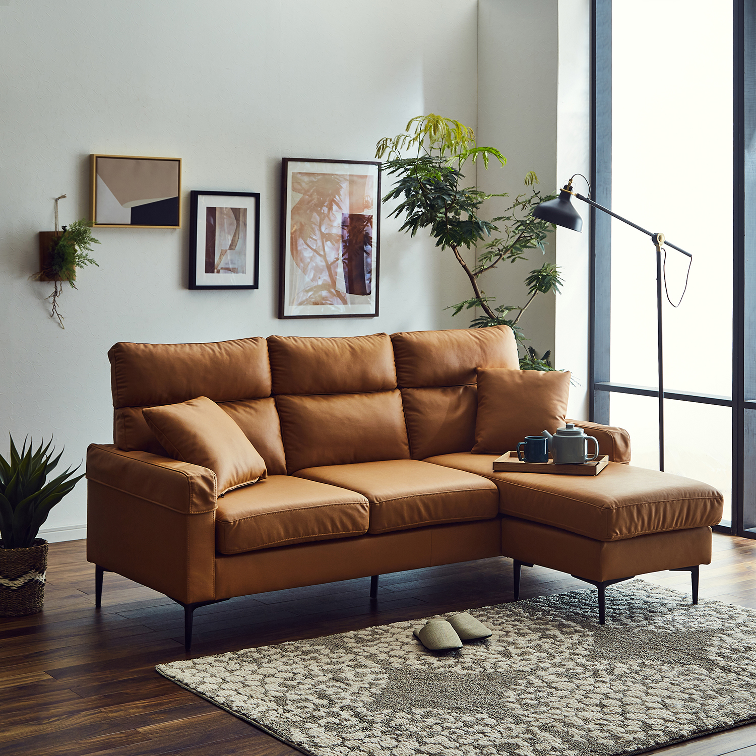 ファブリックソファならオレンジで探せばいいですが、レザー・レザー調ならオレンジというキーワードより、キャメル、キャメルブラウンなどのほうが見つかりやすい