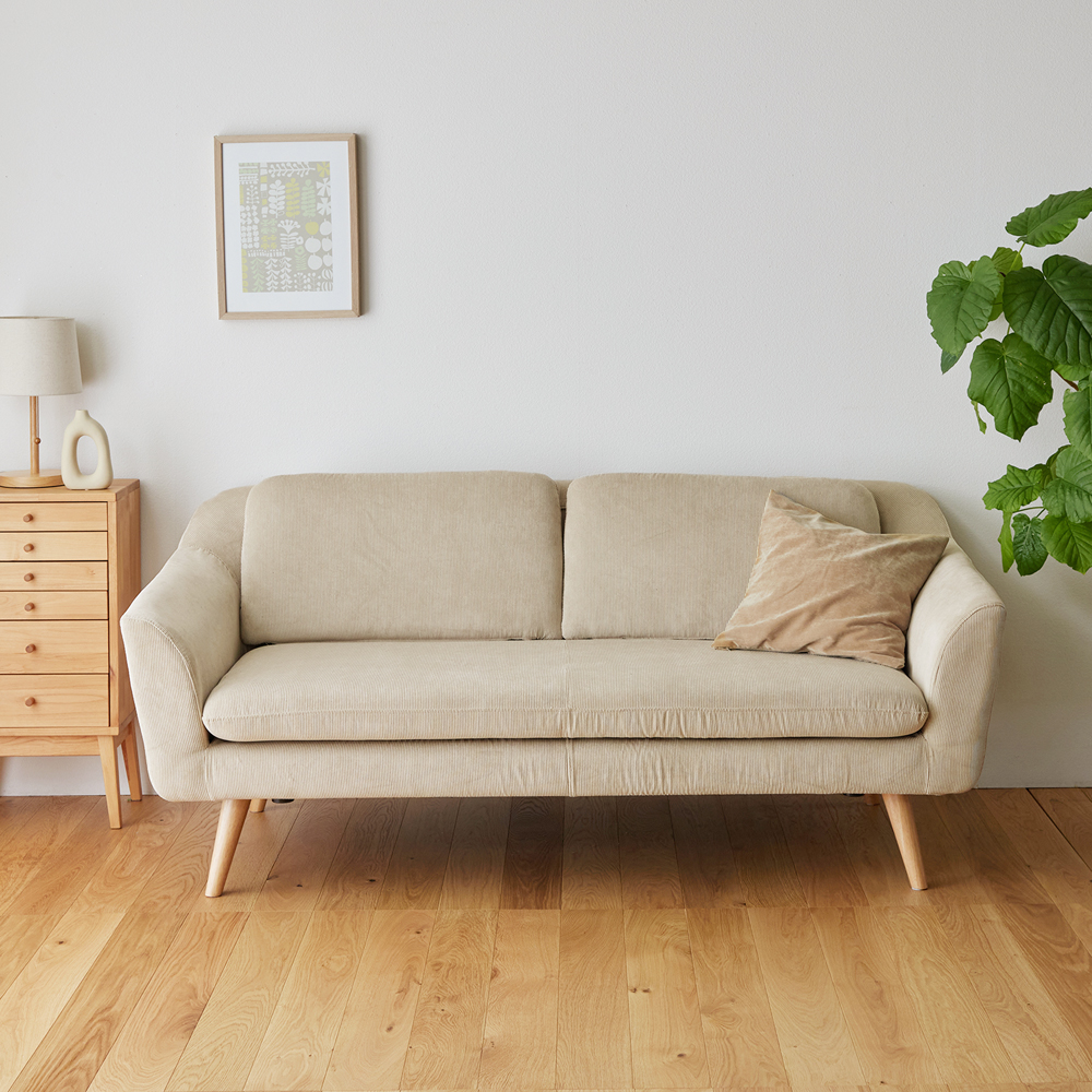 丸みを帯びたデザインがオシャレな北欧調スタイルのソファーカバーは全て取り外し可能ご家庭で手洗いできるのでお子さまやペットがいるご家庭にも安心ですコーデュロイ生地と丸みのあるフォルムが、お部屋をふんわり和やかな雰囲気で包み込んでくれます。木製の脚部は取り外すことができるので、ロースタイルのソファーとしてもお楽しみいただけます。脚付きの時はお掃除ロボットの動きを邪魔しません座面が広くゆったり座れるのも魅力背もたれ・座面ともに程よいクッション性やフィット感のある座り心地