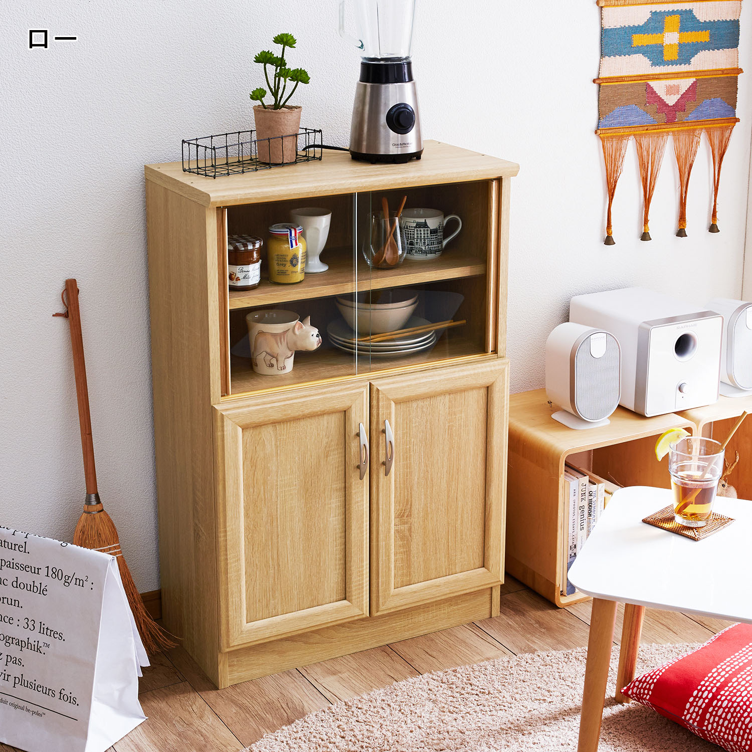 味わい深い木目を持つナラ材を贅沢に使用したカップボードナチュラルな佇まいは幅広いインテリアにしっくりと馴染みます