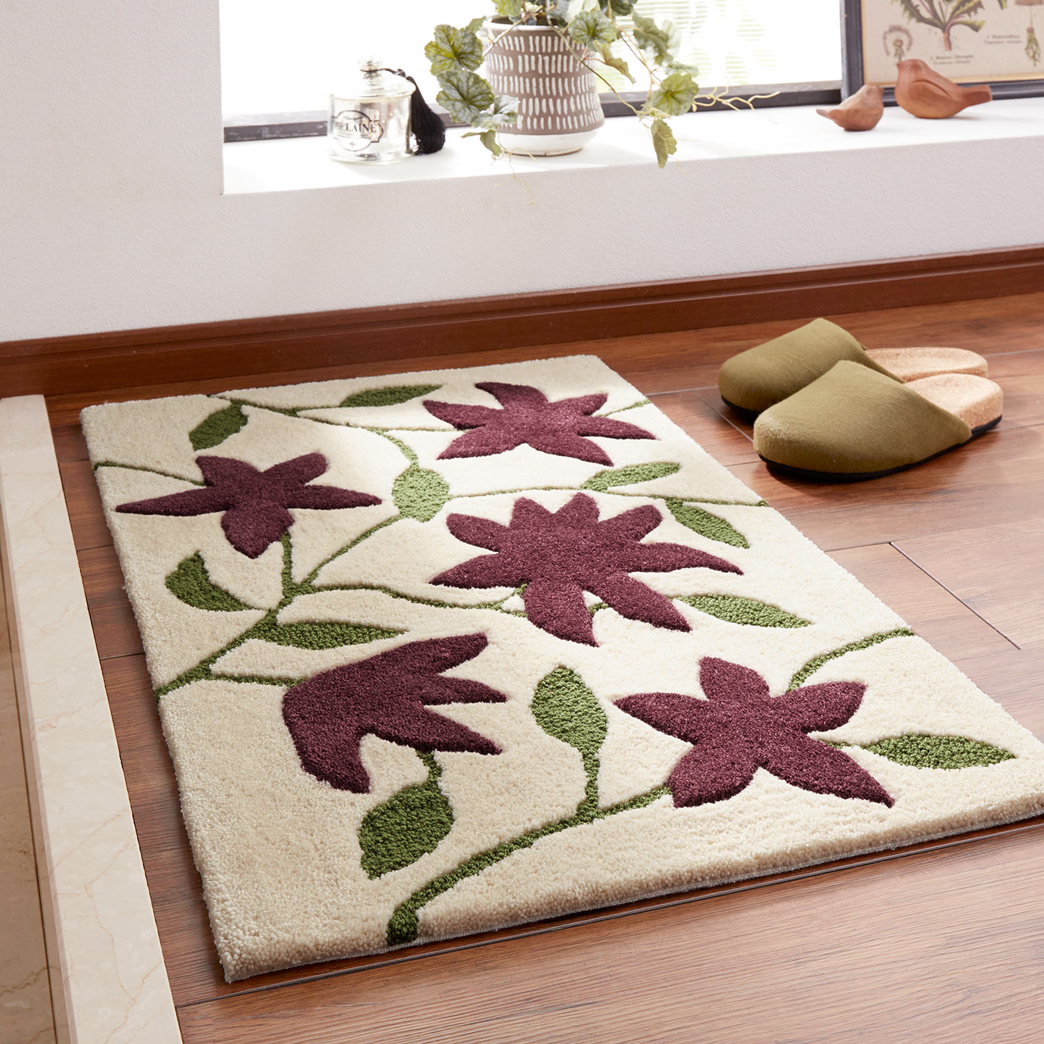 爽やかな色合いが玄関スペースをエレガントに演出ウィルトン織りで花柄を表現した、華やかなデザインが魅力。抗菌・防臭機能糸を使い、洗濯可能でいつも清潔吸着シート付きでズレにくいから使い勝手も◎玄関スペースに合わせて選べる3サイズ展開。)