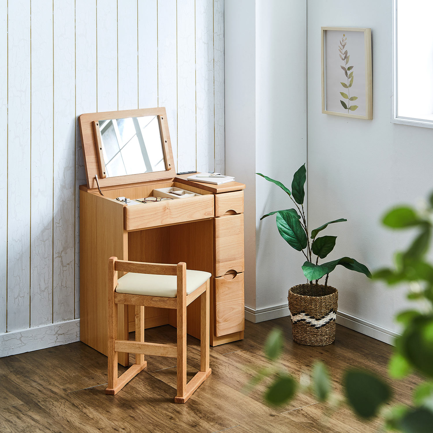 天然木アルダー材を使用した、上質感のあるドレッサー