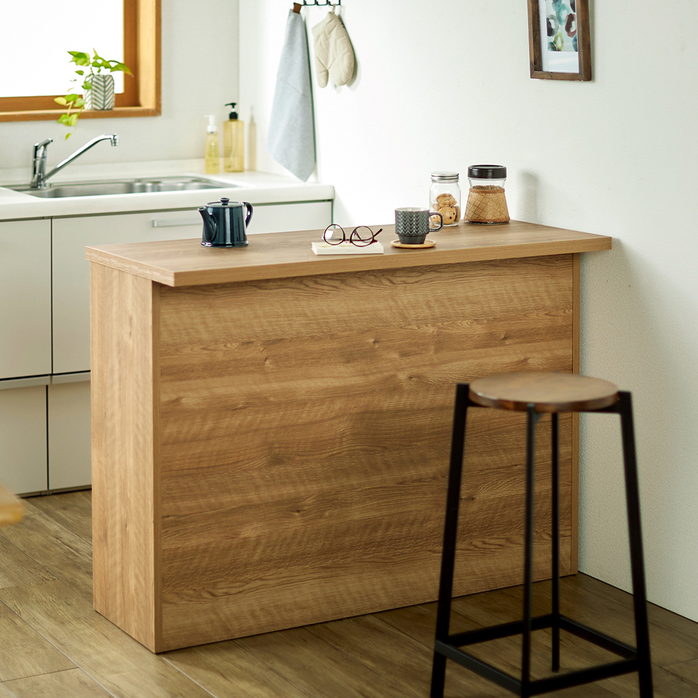 [日本製]リビング・ダイニングに合わせやすいキッチンカウンター