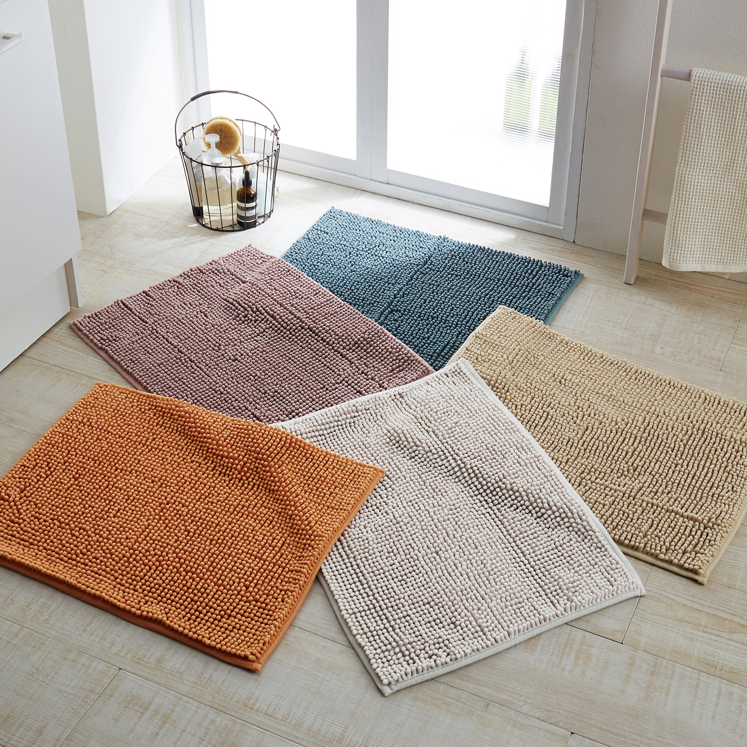 吸水速乾糸コスモトロンを使った北欧調デザインのバスマット