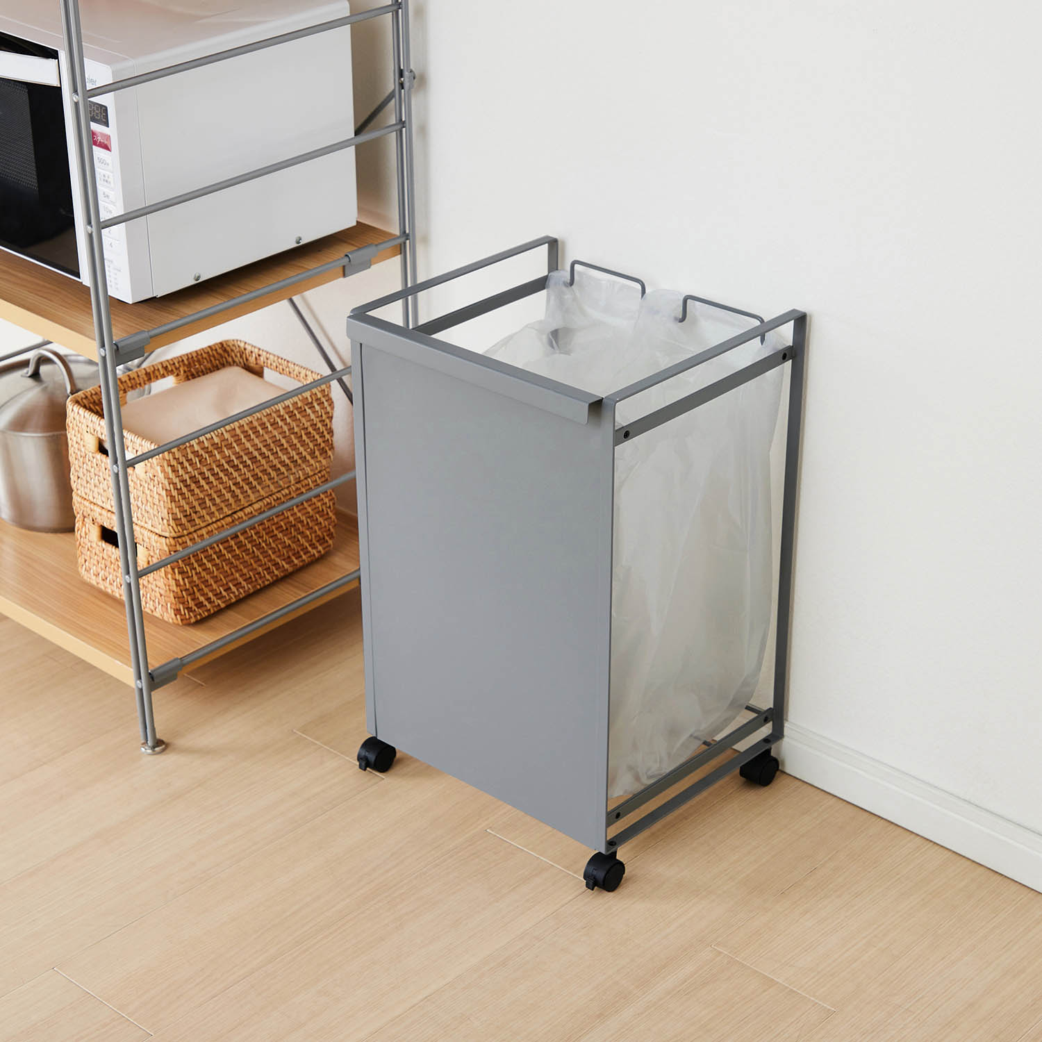 スチール素材だから汚れてもお手入れラクチンキャスター付きなので袋の取り外しや掃除の際の移動もスムーズ