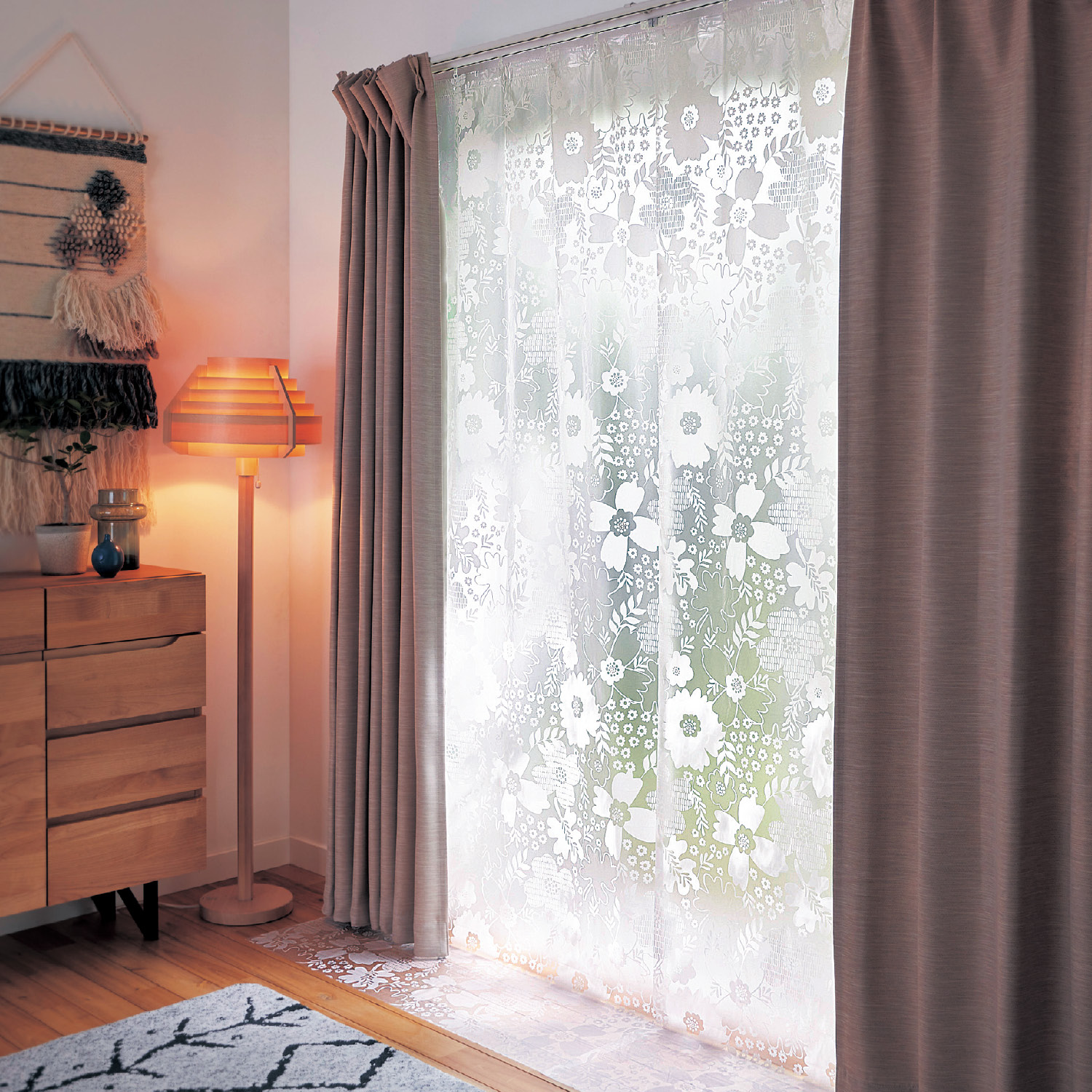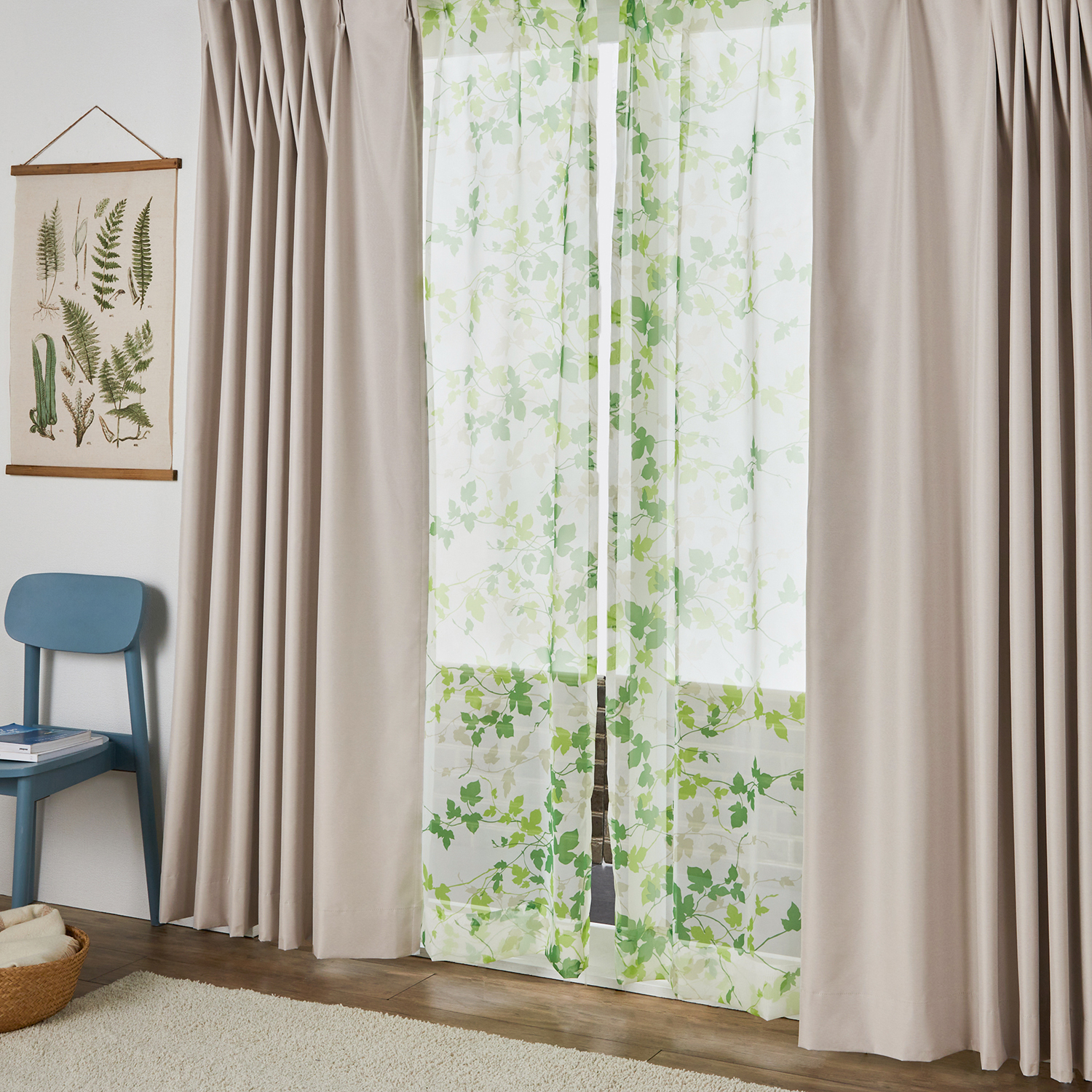 自然モチーフの遮光・遮熱カーテン & UVカット・遮熱・ミラーレースカーテンセット