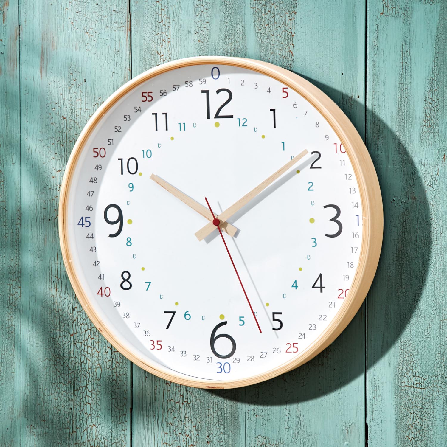 子どもも見やすい木製知育掛け時計