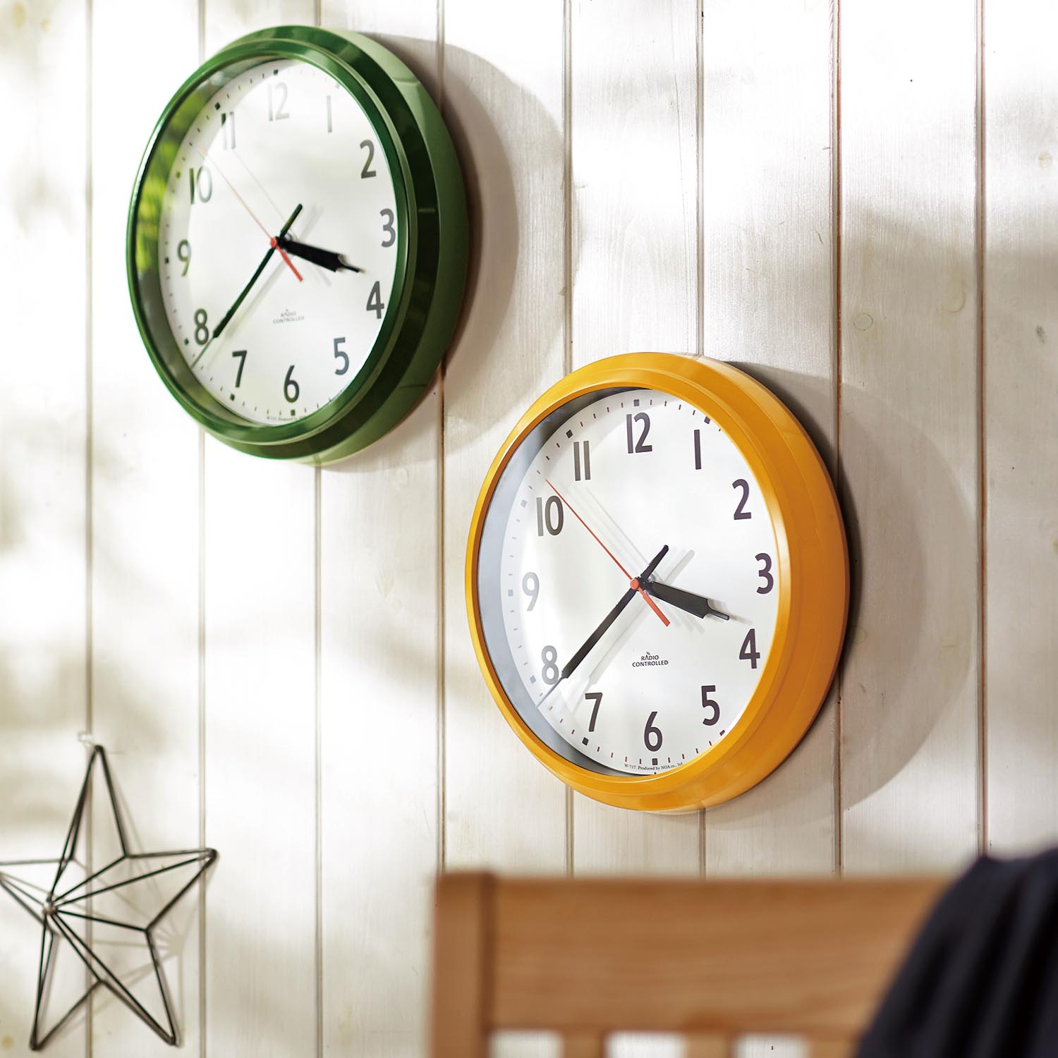 ボタニカルカラーが魅力的な、時刻の見やすいシンプルな電波掛け時計洗練された無駄のないデザイン壁面に映える色使いはどこかレトロなテイストが漂い、インテリア性もバッチリ自動時刻修正してくれるので、正確に時を刻みます)