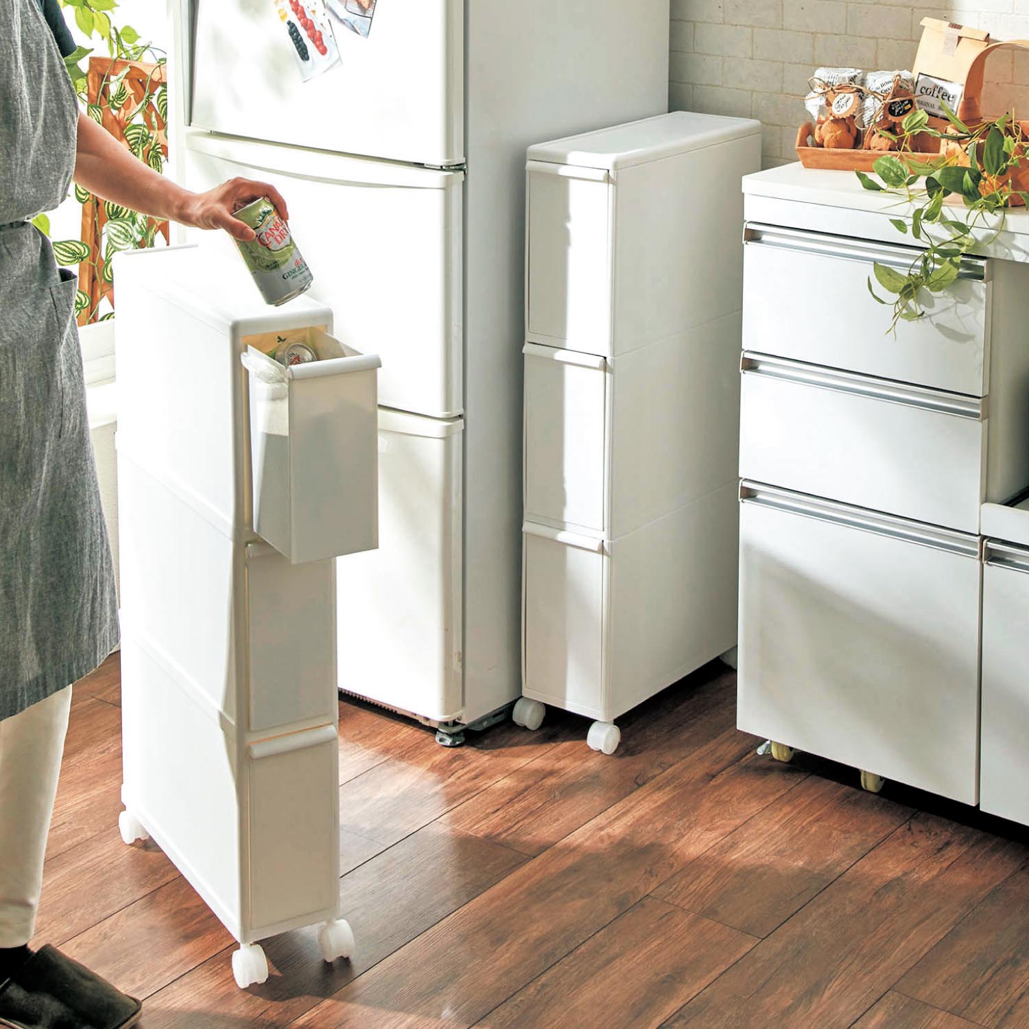 隙間に置けるキャスター付き分別キッチンゴミ箱