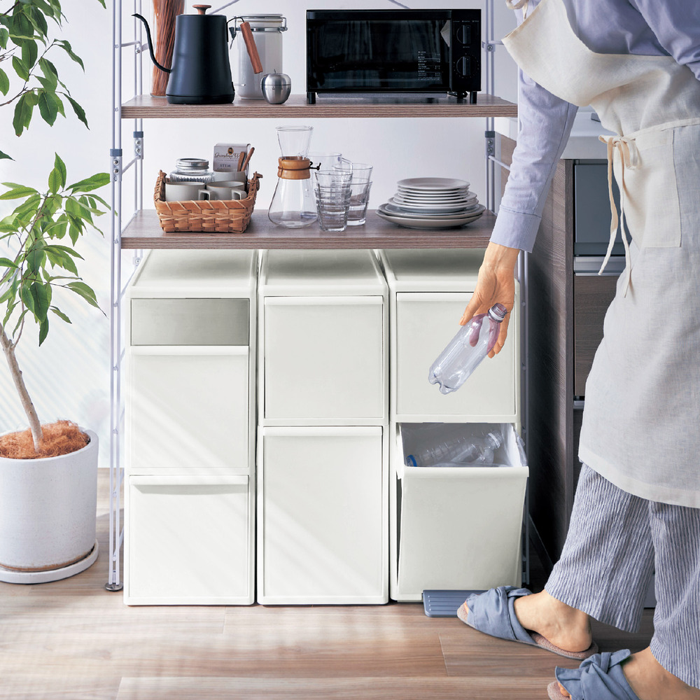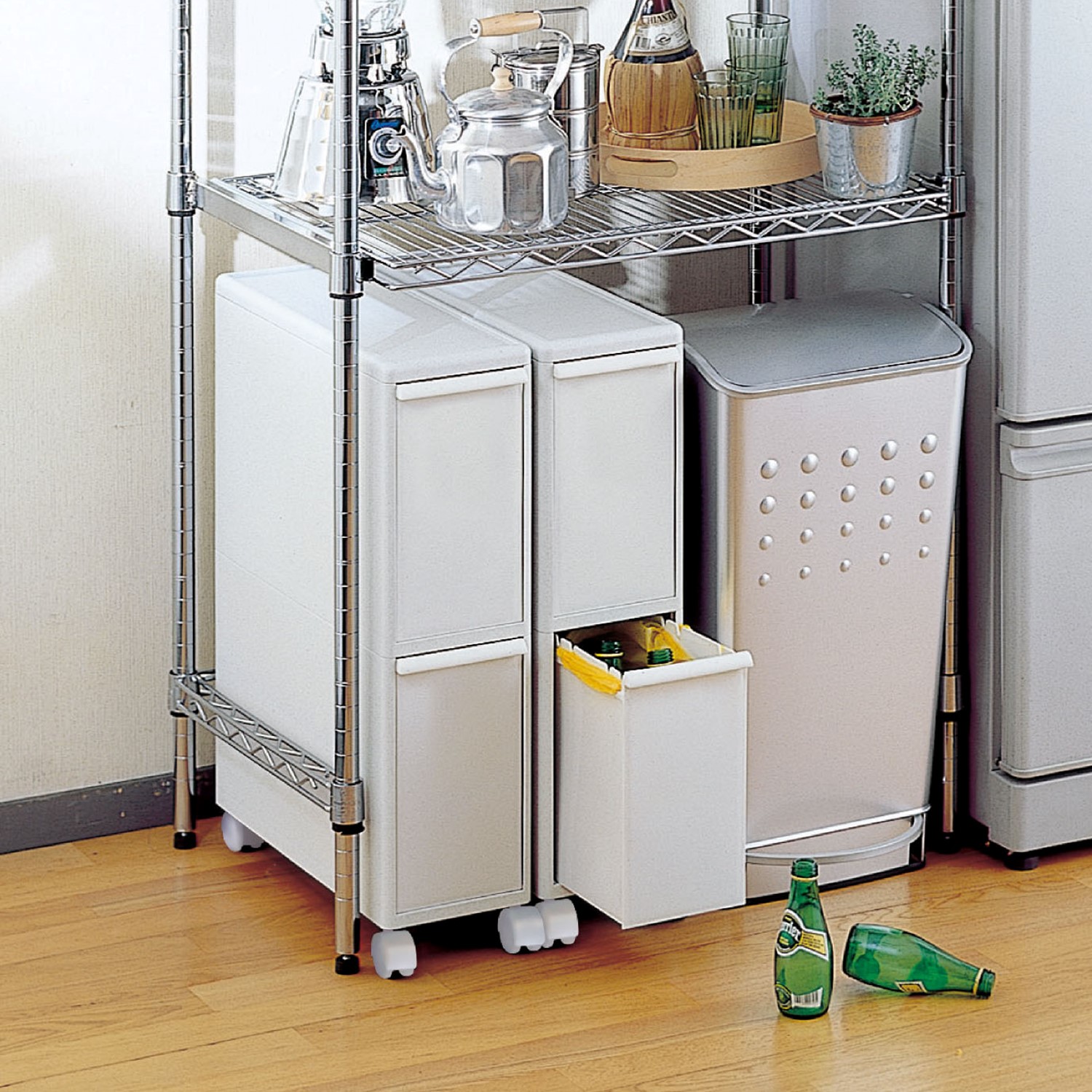 キッチンに合わせやすいシンプルなデザインの分別ゴミ箱引出しタイプで、縦に分類収納できます。天板にはちょっとした小物などを置けるので便利キャスター付きなので移動もラクラク冷蔵庫やシンク横などにすっきり収まるサイズをご用意しました