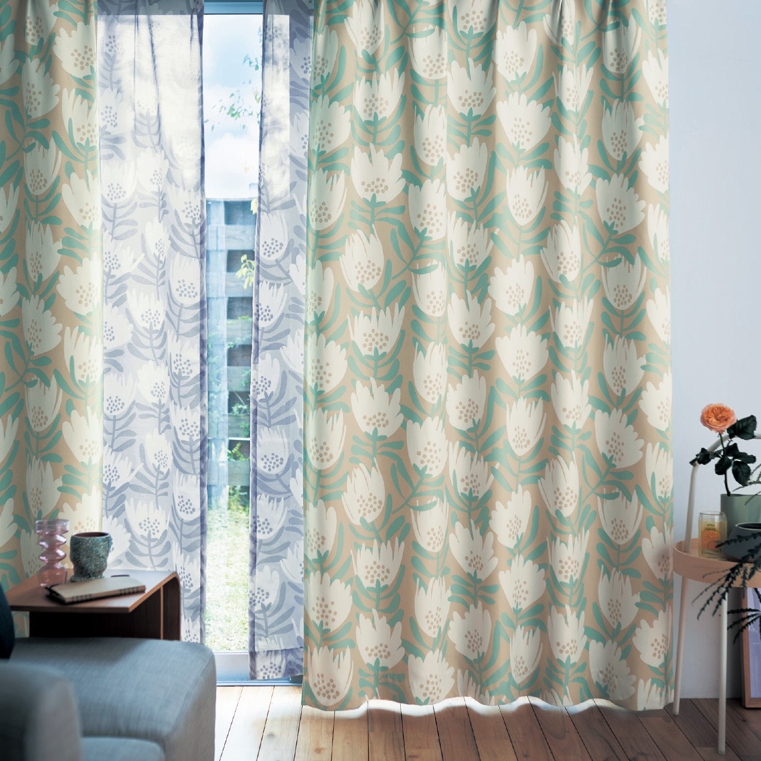 北欧調フラワーデザインの遮光・遮熱オーダーカーテン<1枚>