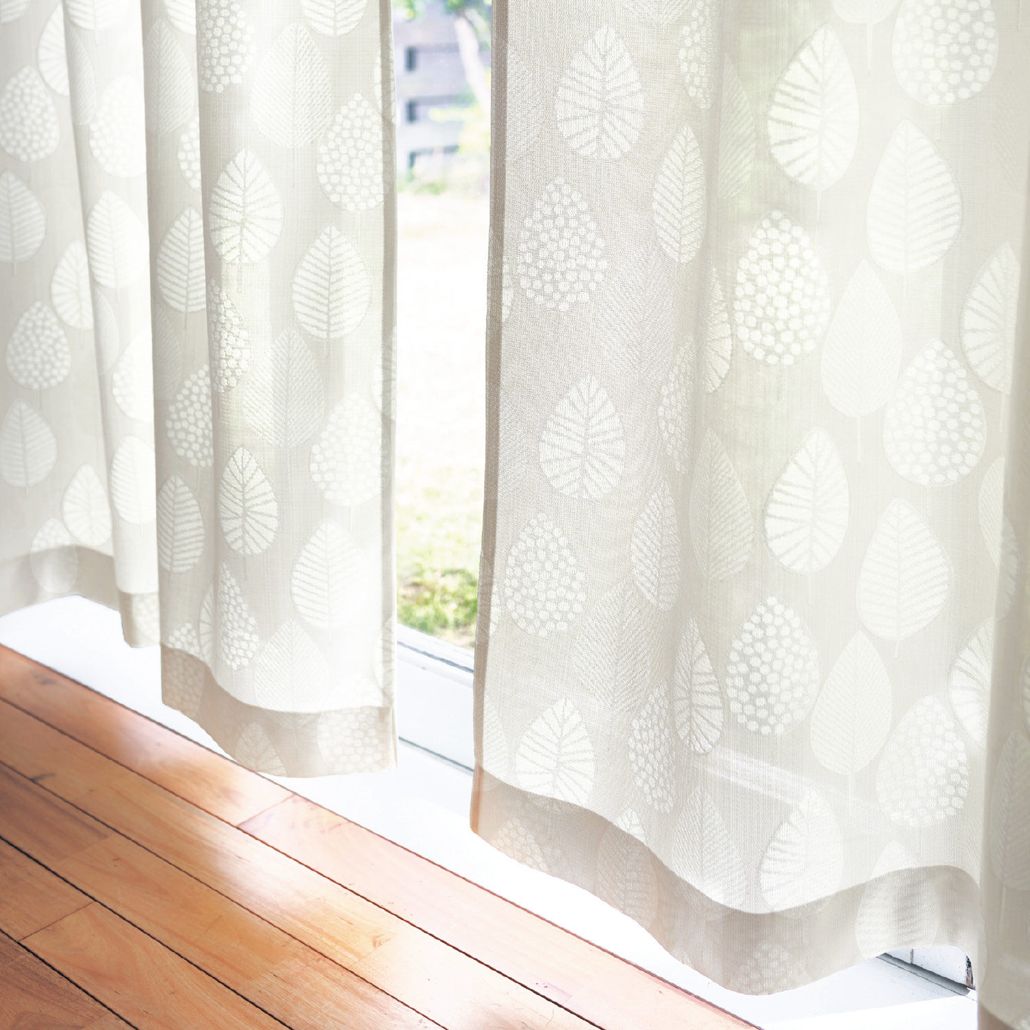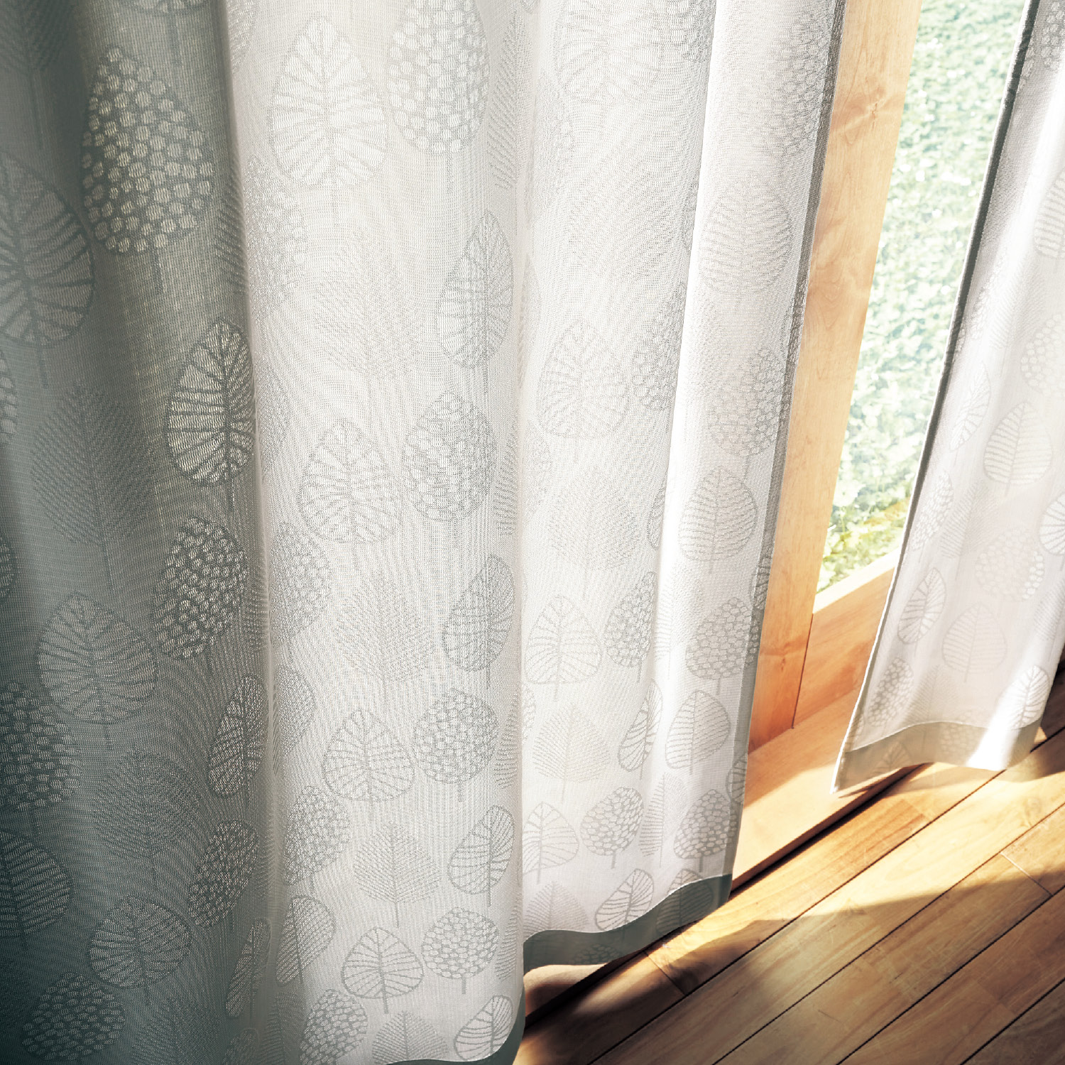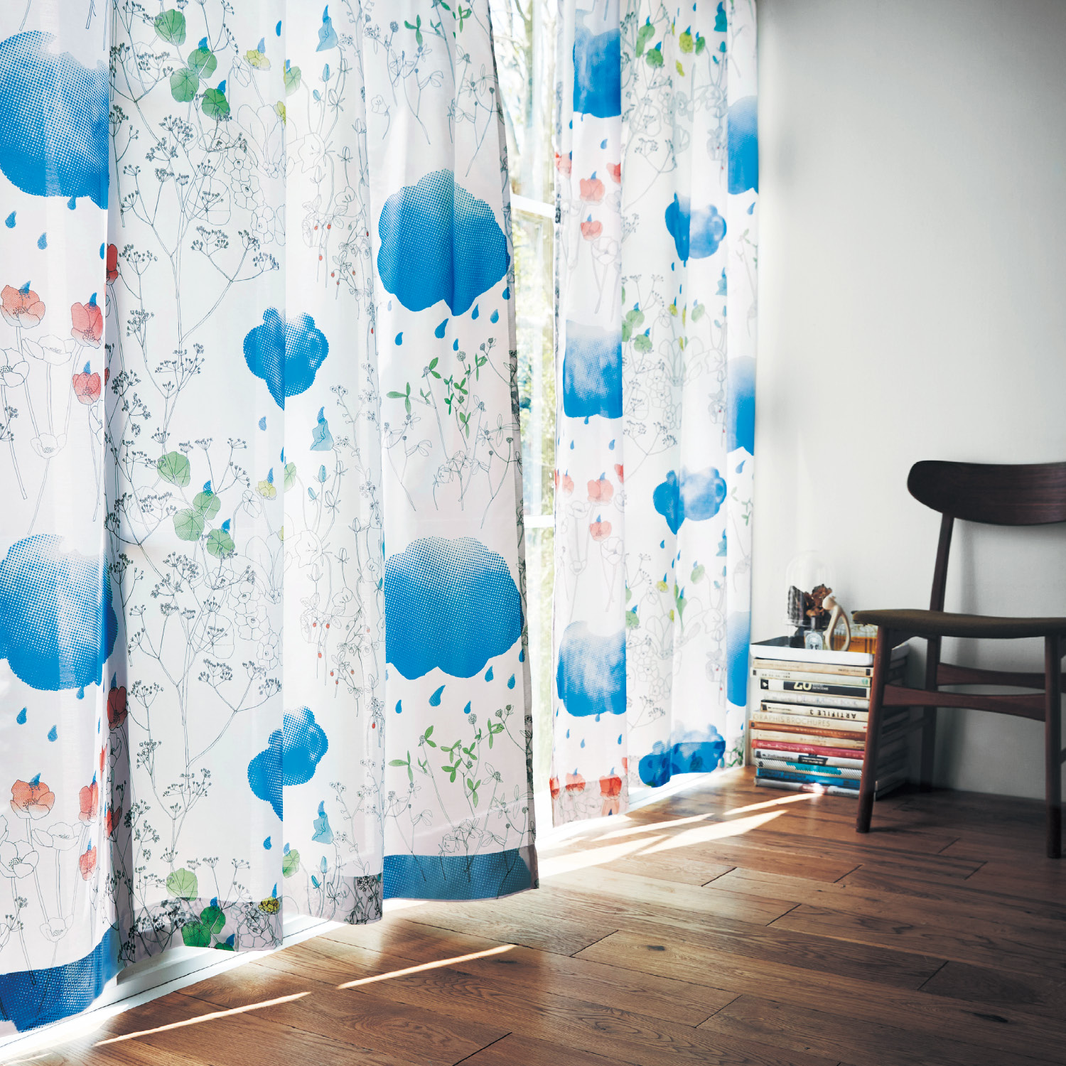 恵の雨と花々を描いた北欧デザインのUVカット・遮熱・遮像ボイルカーテン