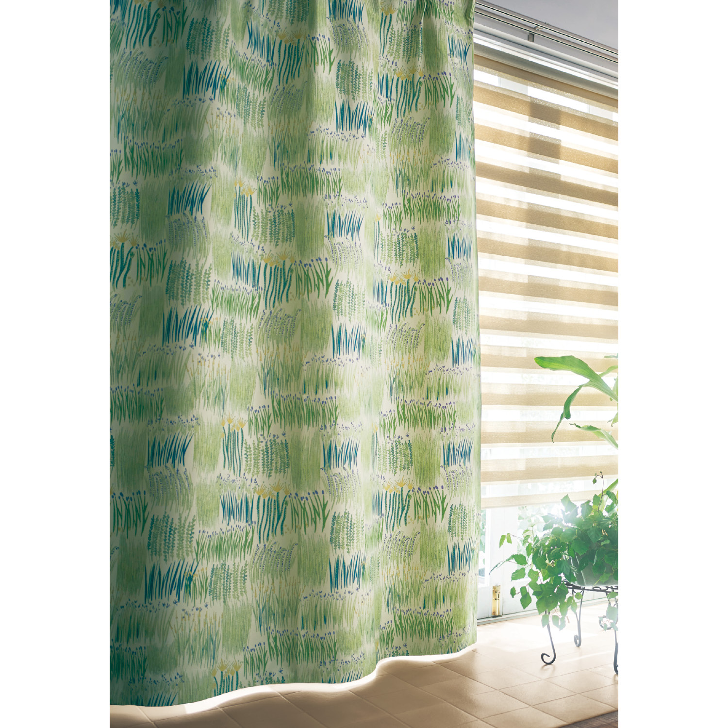 眩しい日差しや暑さ対策にもなる遮熱・遮光機能付きお部屋が明るく見えるグリーンベースの草花モチーフ柄自然にかすれたような水彩調のプリント柄草花を繊細なタッチで書き込んだ軽やかなデザイン)