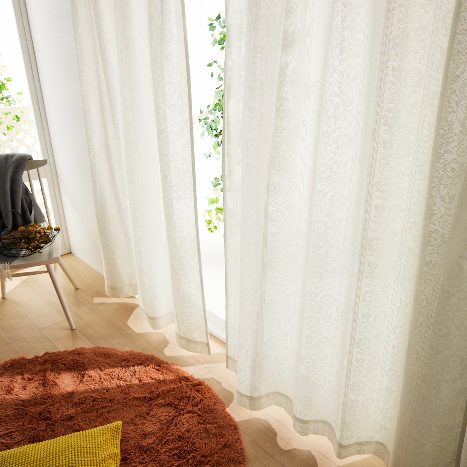 かわいらしい北欧調の花柄を編んだレースカーテン気になる花粉をキャッチしてくれるので、窓辺にぴったり)