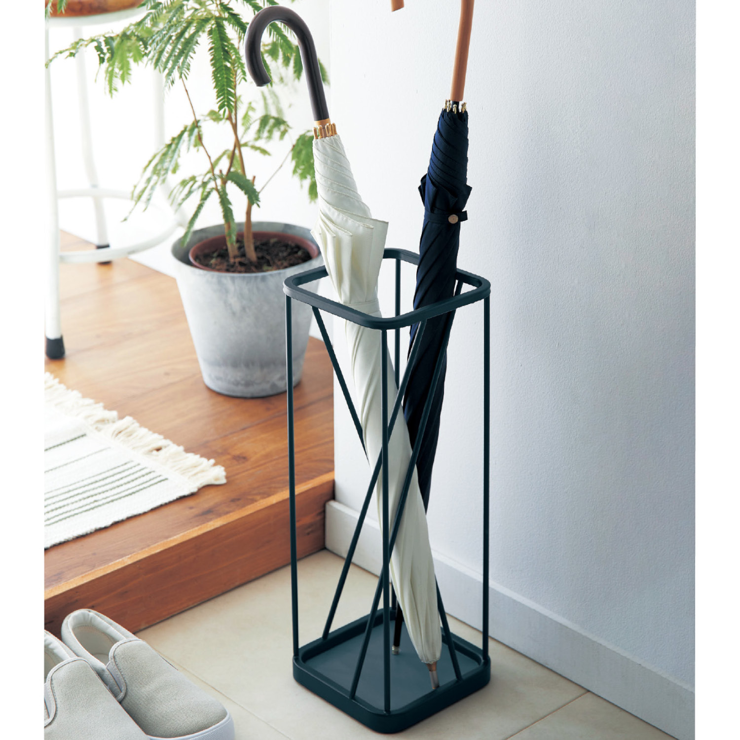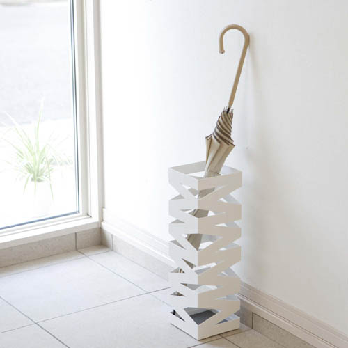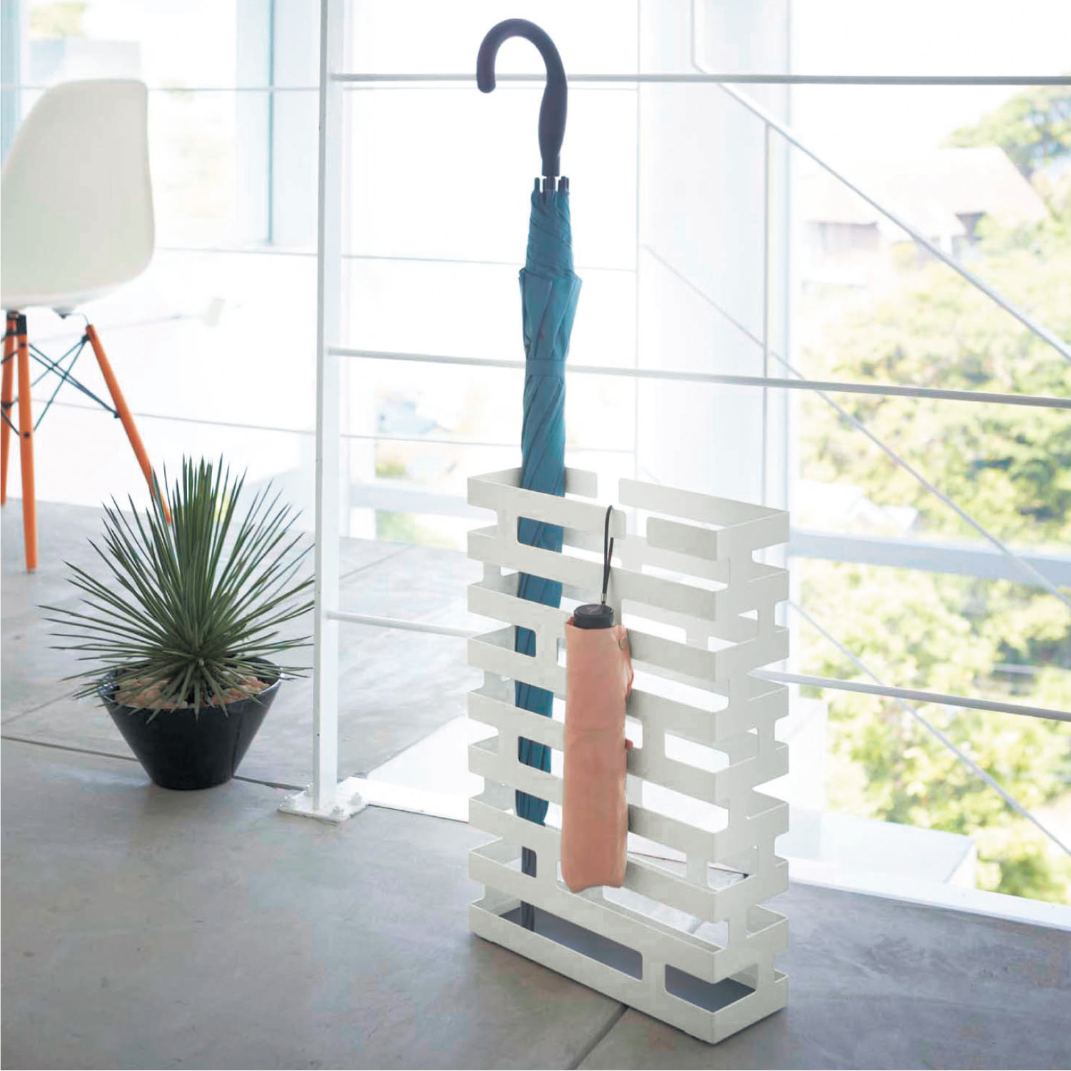 シンプルモダンなグラフィックが玄関をスタイリッシュに演出するアンブレラスタンドどんなインテリアにもなじみやすく、置く場所を選びませんフレームのスリット部に折り畳み傘を引っ掛けて収納できるのもポイント