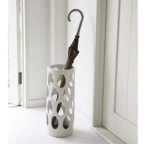 上質感のある陶器を使い、モダンに仕上げたアンブレラスタンド穴があいたようなデザインが、シンプルな中にセンスを感じさせます。外に置いても、玄関に置いても空間がパッと華やかになりそう