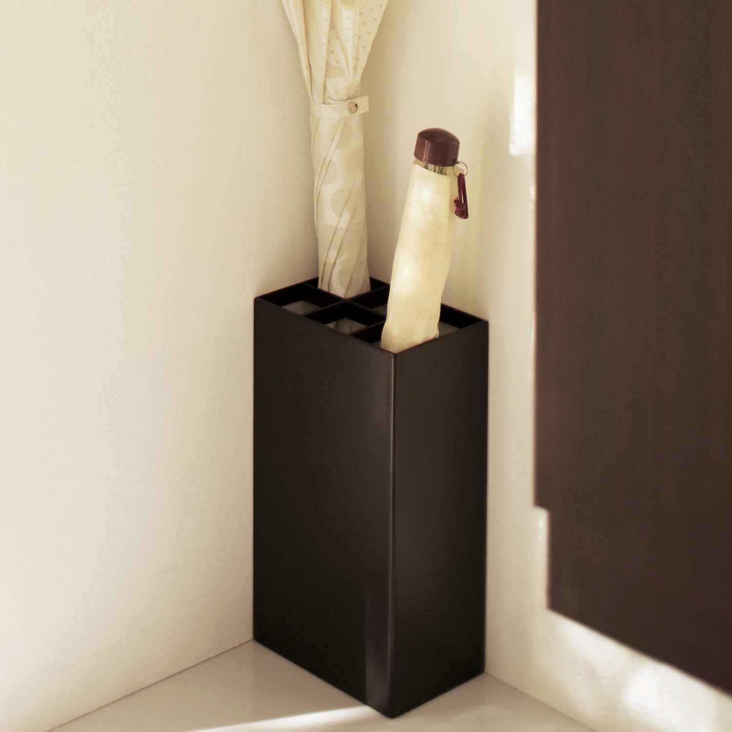どっしりと重量感があり、省スペースでおしゃれに収納できます。真ん中に仕切り板があるので、長い傘も斜めにならず、折りたたみ傘も立てて収納OK