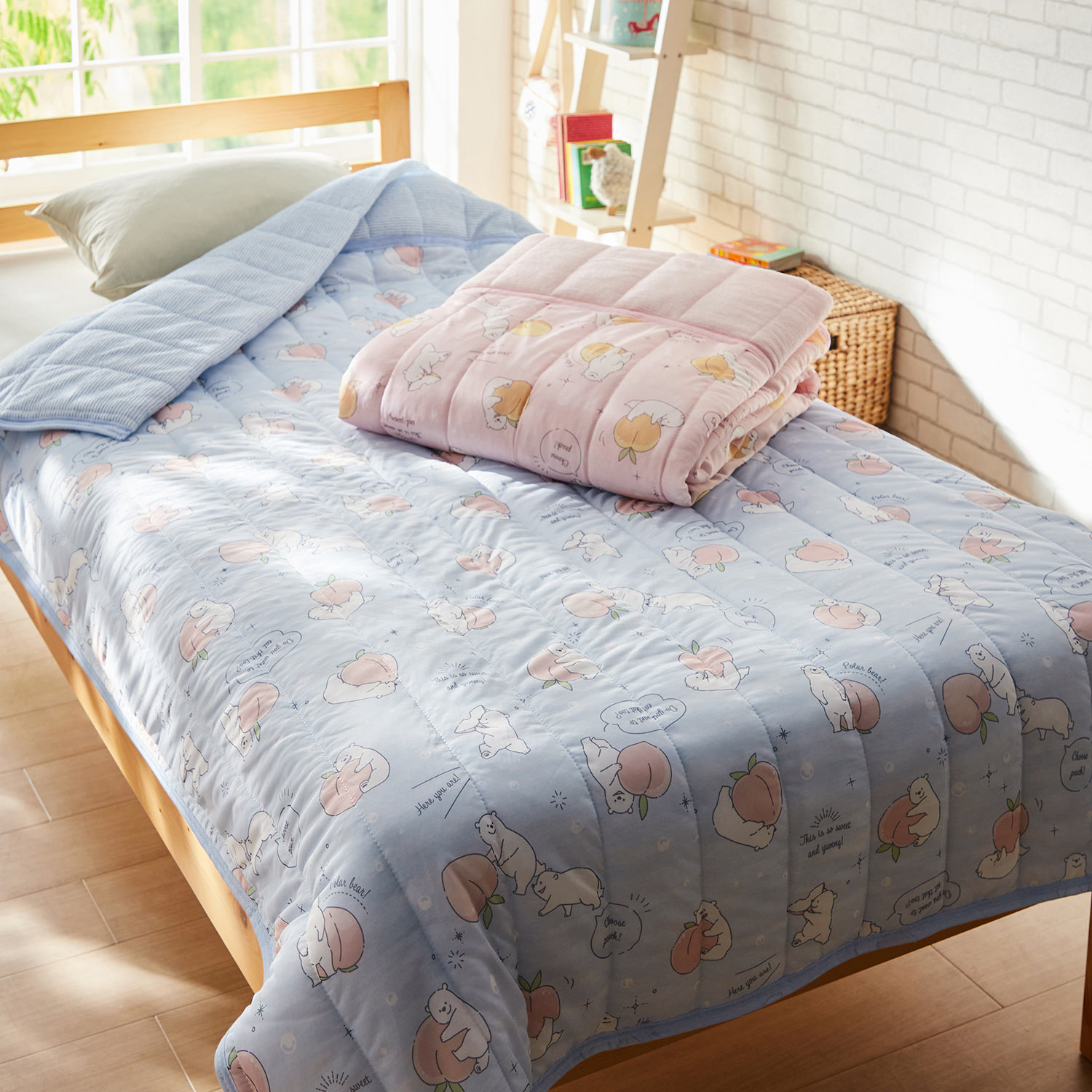 愛くるしいしろくまが桃を抱えている絵柄に注目お子さまにもおすすめのかわいいキルトケット)