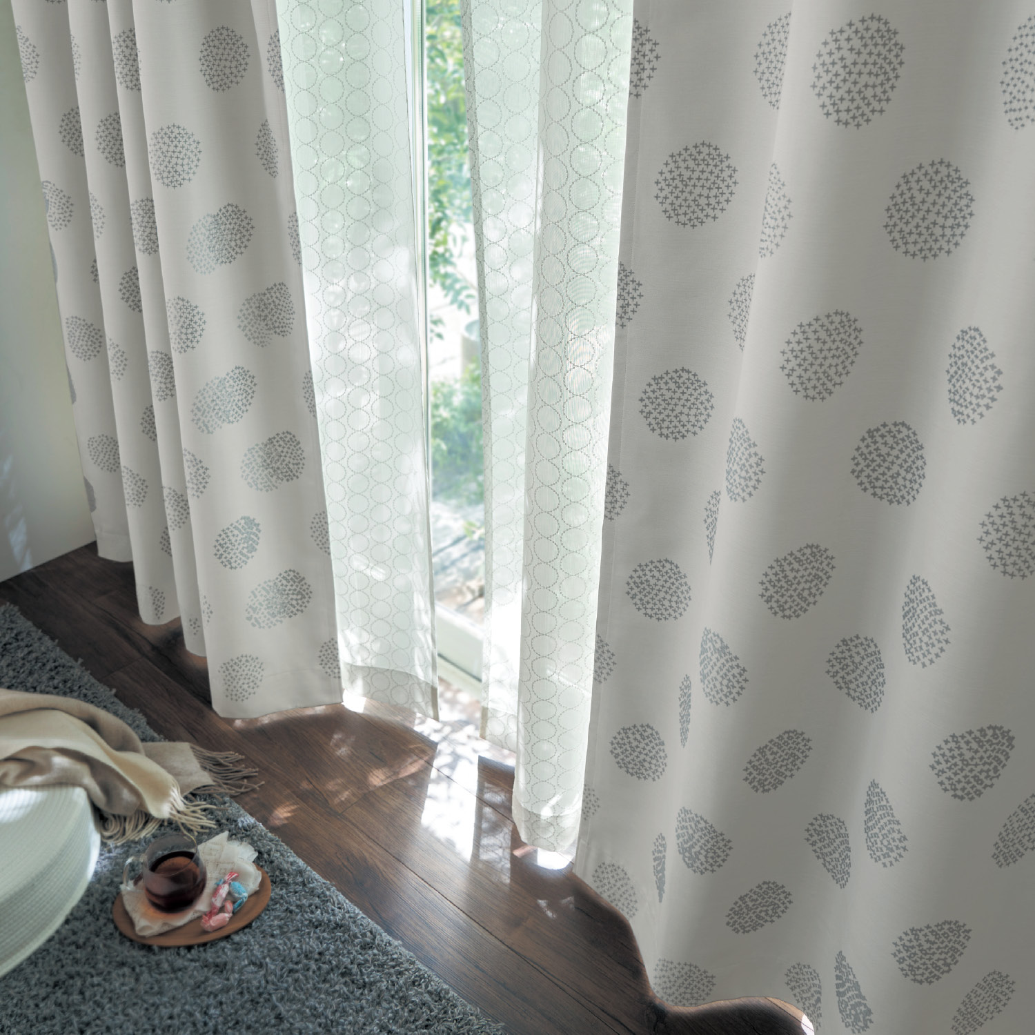 どんなインテリアにも合わせやすい北欧調デザイン厚地カーテンとレースカーテンのセット