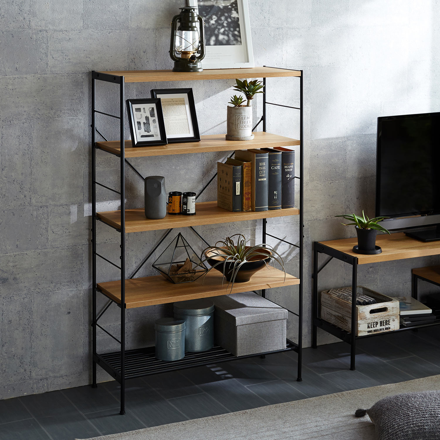 木製棚板とアイアンフレームが特徴のシンプルな本棚。異素材ミックスがおしゃれな天然木調ブックシェルフはコンパクトでリビングでも使いやすく、テレワークの書類収納にもピッタリ