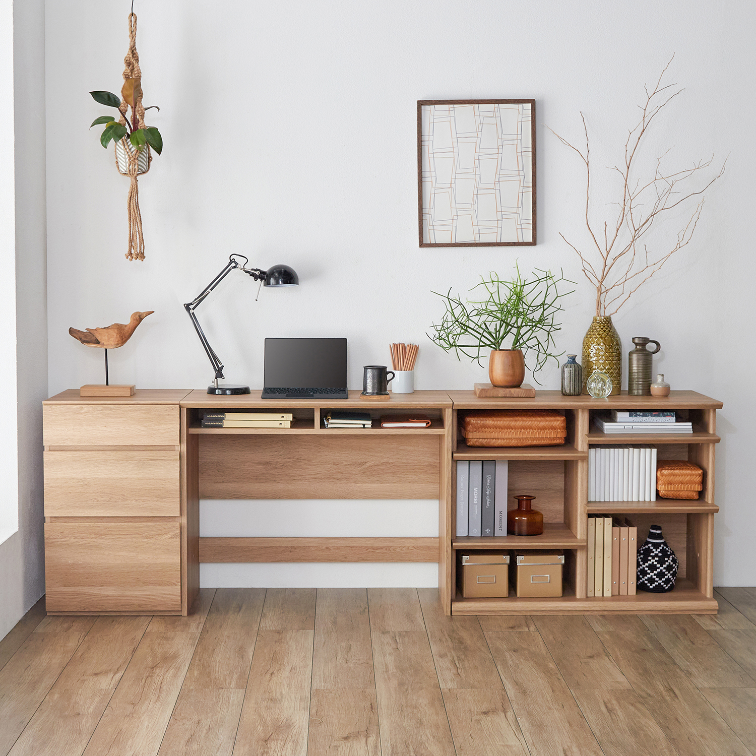 [引出し]深さの違う3杯の引き出しで、細かい文房具から書類まで様々なサイズのリビング雑貨を収納できます