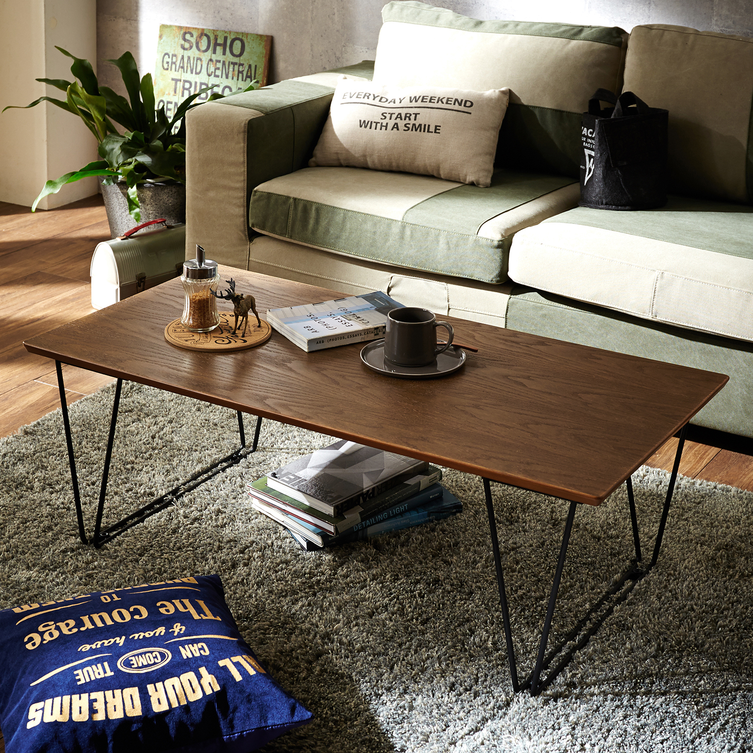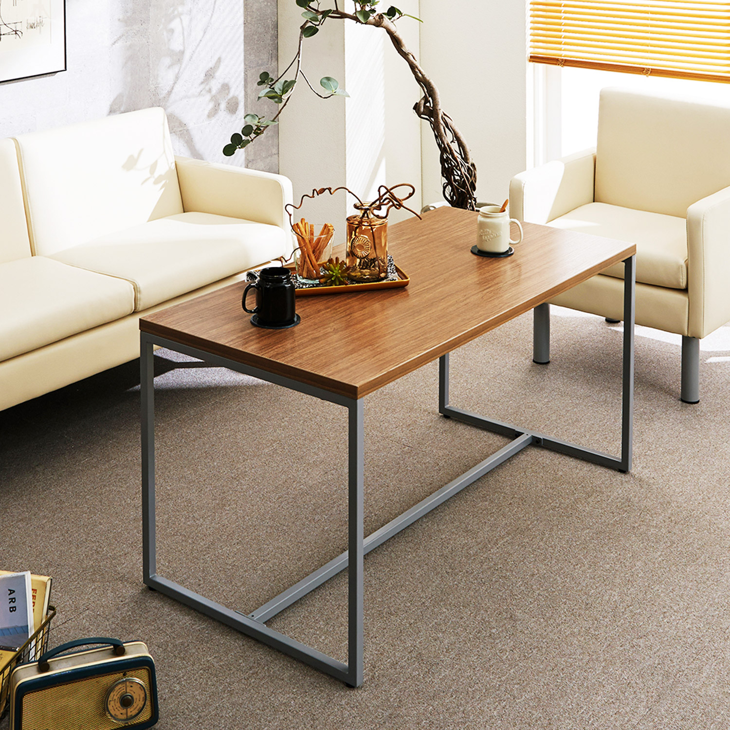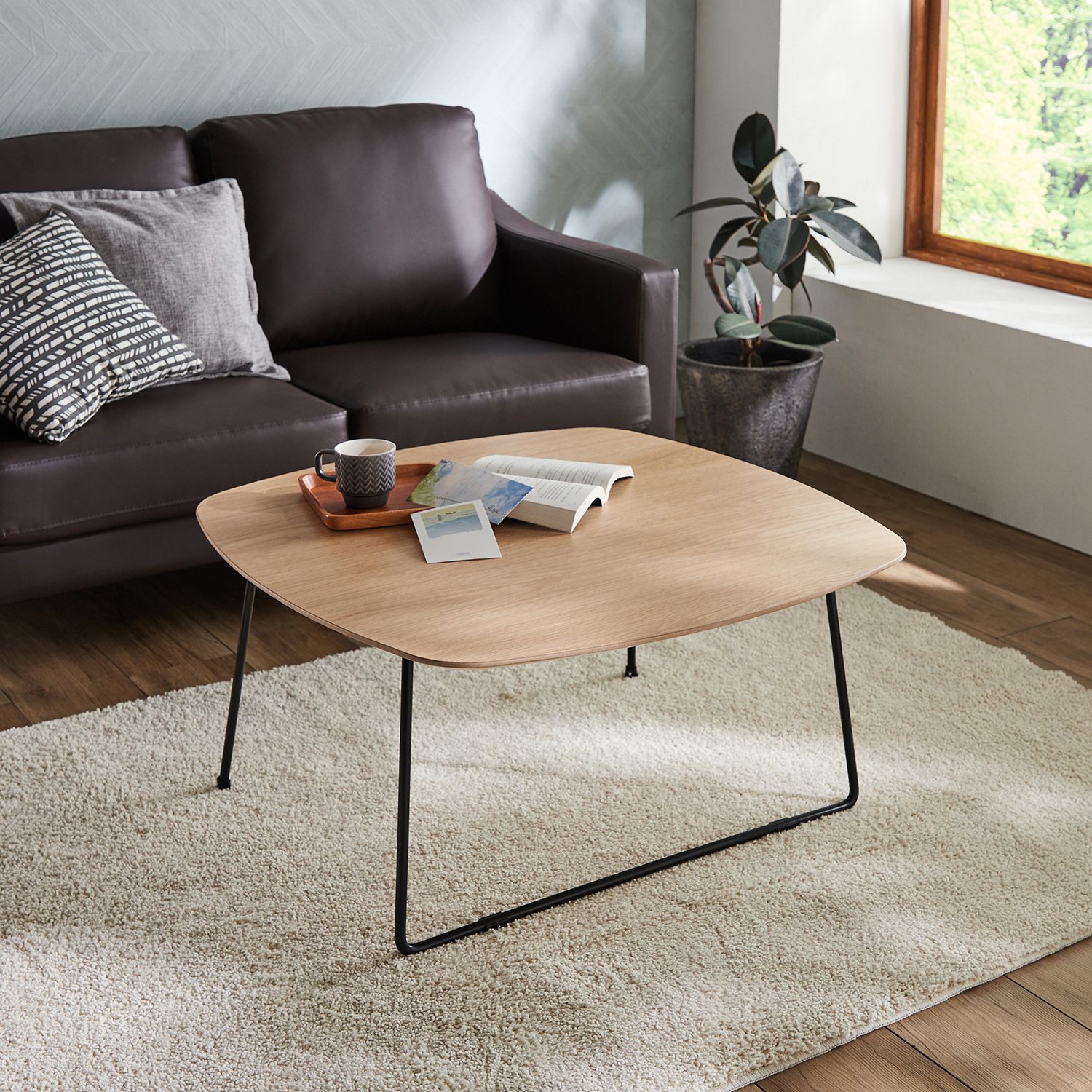 オーク材×スチール脚のリビングローテーブル