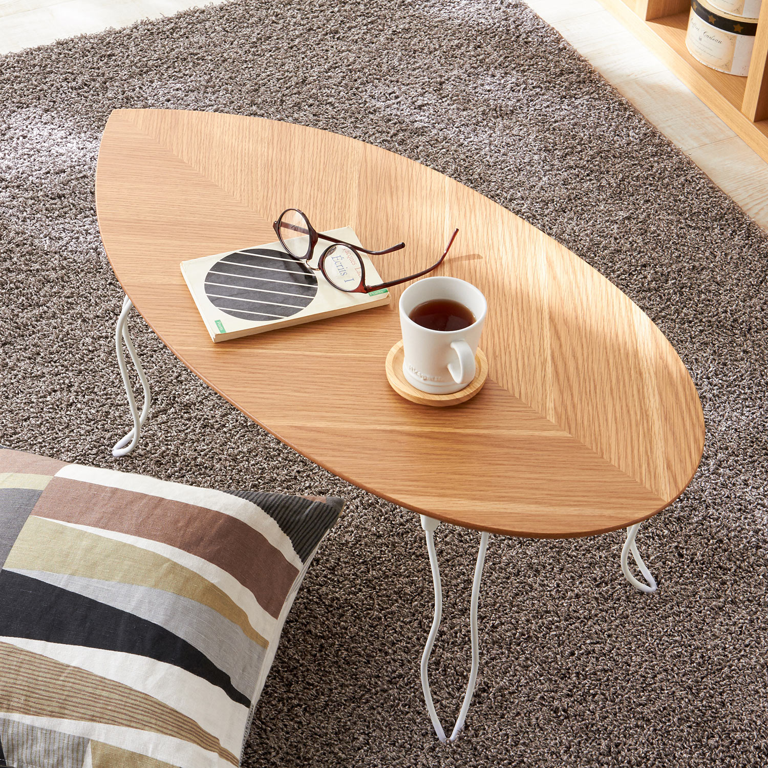 リーフ型天板の折りたたみリビングローテーブル