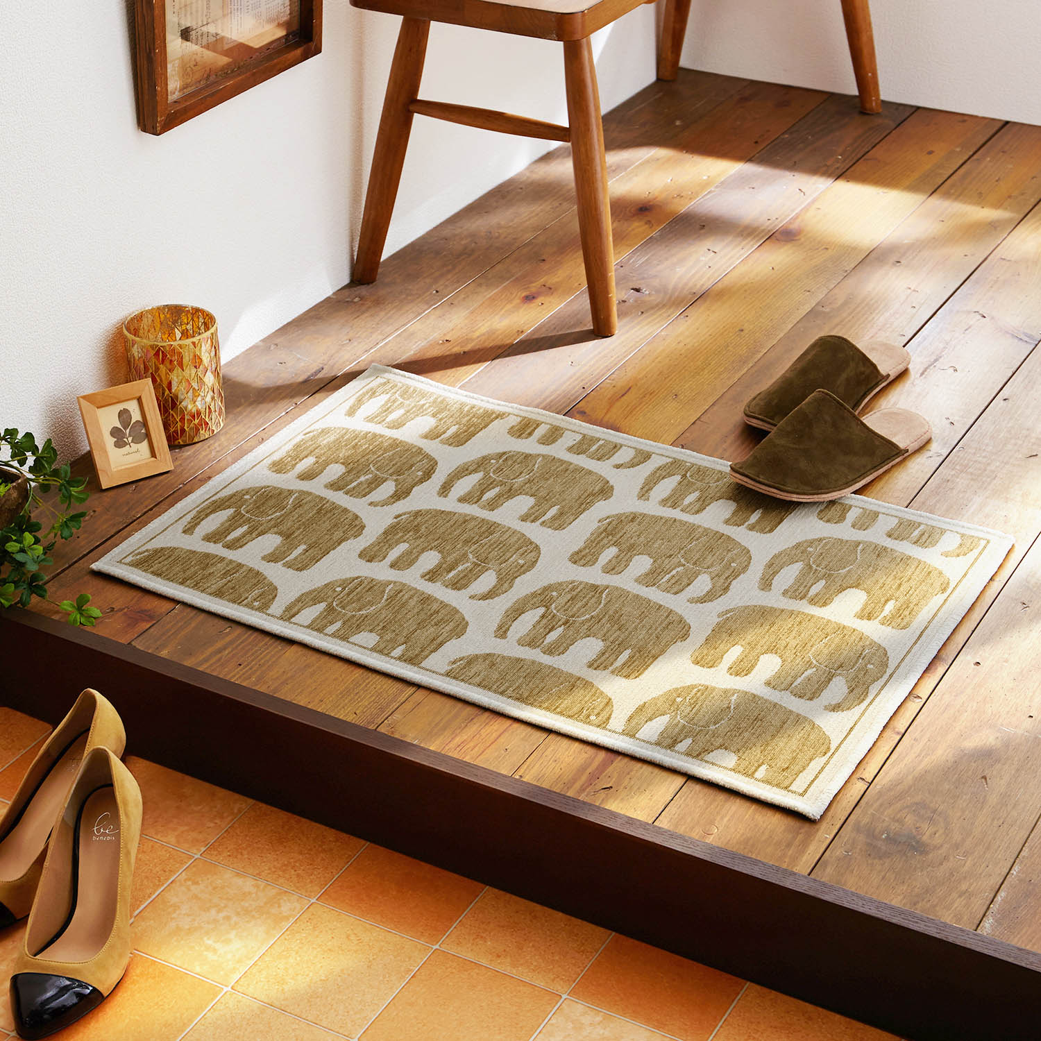 ユーモラスなゾウたちがかわいいレトロ & モダンなデザインは、1820年に創業した北欧最古のテキスタイルブランド「フィンレイソン」と、芸術大学生主催のデザインコンペティションで発表されたもの今でも変わらぬ人気を誇る定番パターンを、ゴブラン織りの玄関マットにしました程よい厚みがあり、しっかりとした踏み心地です裏側には滑り止め仕様になっています。カラーは2色からお好みで