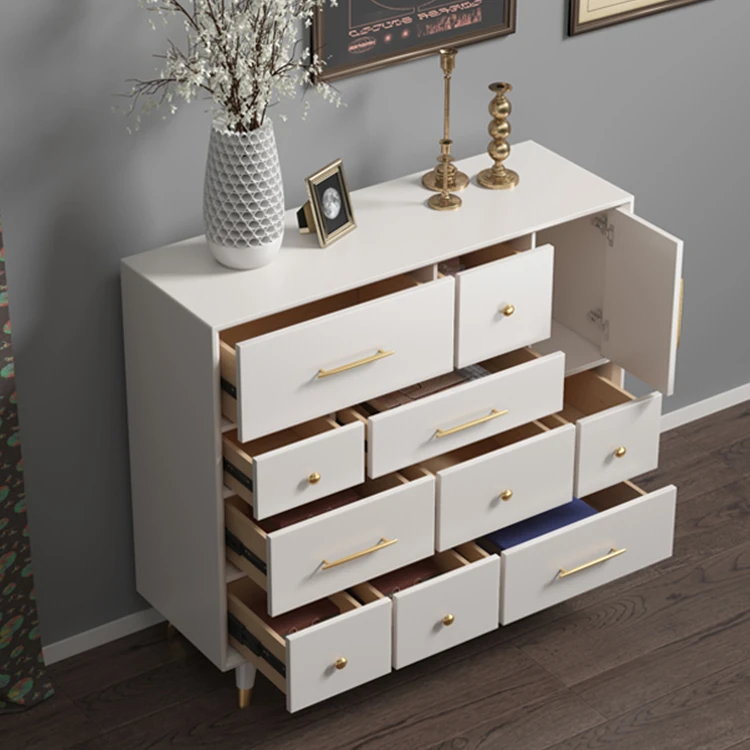 持ち手のデザインがスタイリッシュなランダム配置の引き出しがお洒落